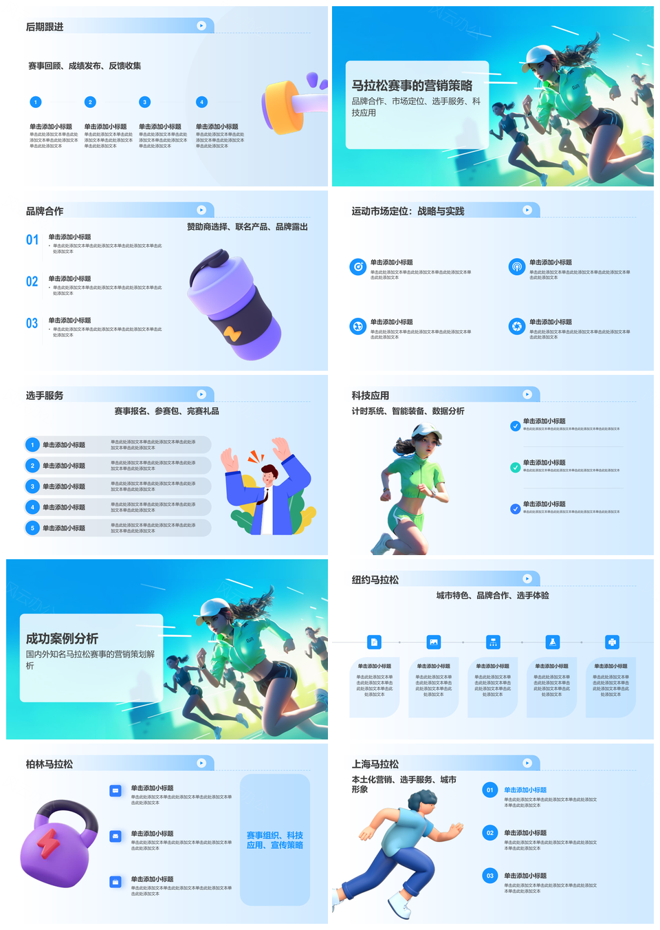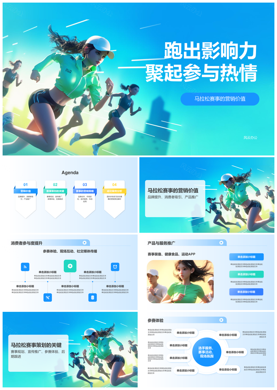 这是一张品牌马拉松营销策划赛事吸引消费者参与推广PPT模板,包含品牌、马拉松、营销策划、赛事、吸引、消费者、参与、推广等主题内容,也可用作品牌马拉松营销策划、马拉松营销策划赛事、营销策划赛事吸引、赛事吸引消费者参与、吸引消费者参与推广、品牌马拉松营销策划赛事、马拉松营销策划赛事吸引、营销策划赛事吸引消费者、赛事吸引消费者参与推广、品牌马拉松吸引消费者、营销策划吸引消费者参与、赛事吸引消费者推广、马拉松赛事吸引消费者、消费者参与推广活动、策划赛事吸引参与推广等PPT场景使用。 风云办公提供的品牌马拉松营销策划赛事吸引消费者参与推广PPT模板,下载格式为pptx,一共18页,作品中文字及图均可以修改和编辑,图片更改请在作品中右键图片并更换,文字修改请直接点击文字进行修改。