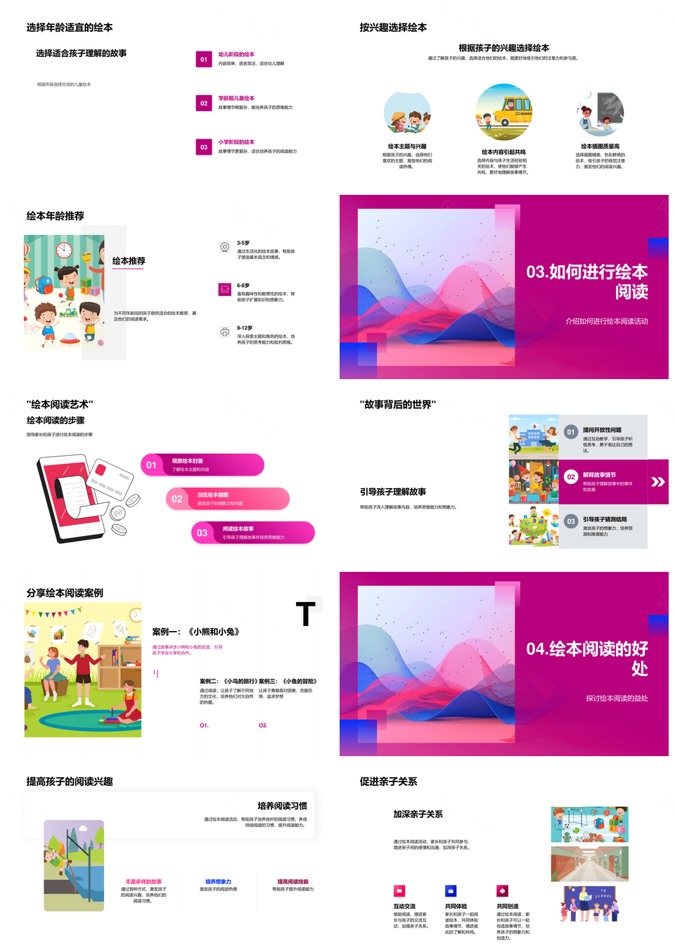 风云办公提供的幼儿亲子绘本阅读策略选书教育益处PPT模板,下载格式为pptx,一共23页,作品中文字及图均可以修改和编辑,图片更改请在作品中右键图片并更换,文字修改请直接点击文字进行修改。