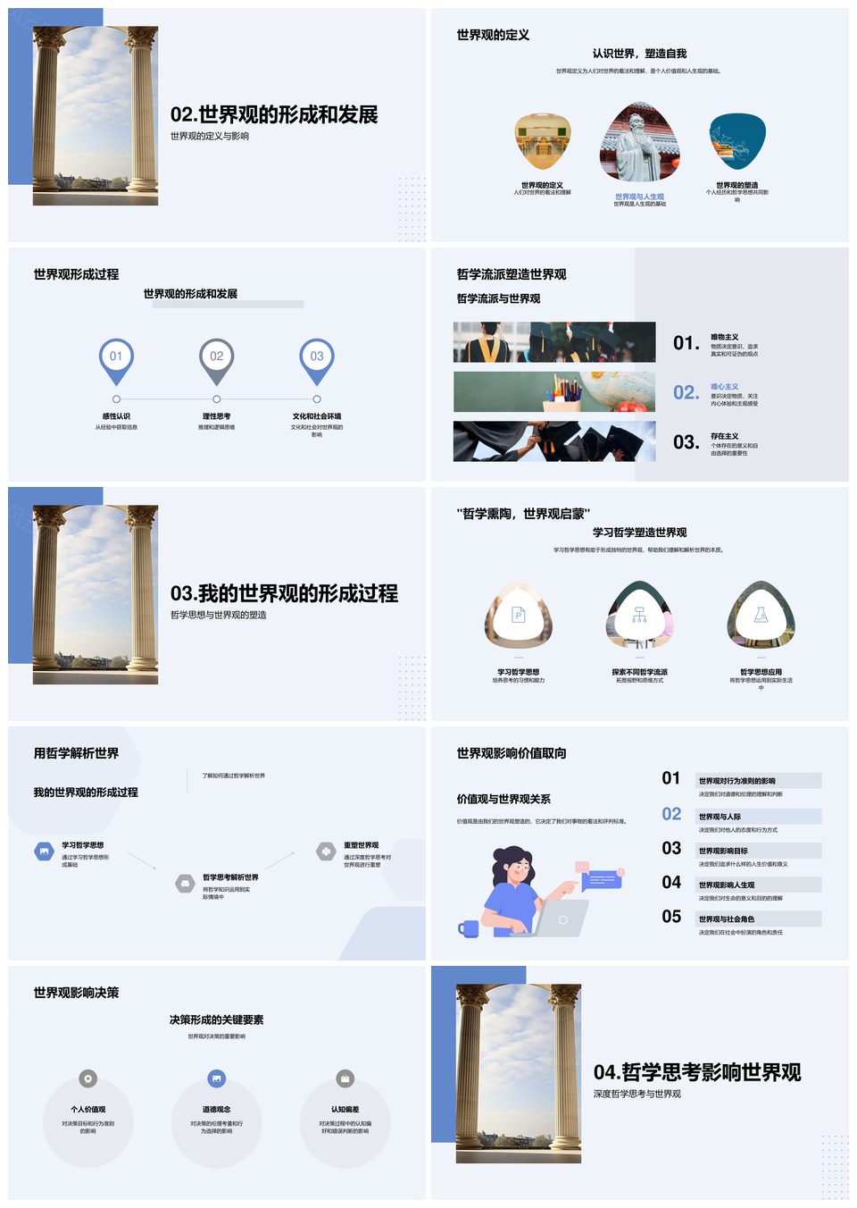 哲学历史流派指引生活思维世界观人生观PPT模板