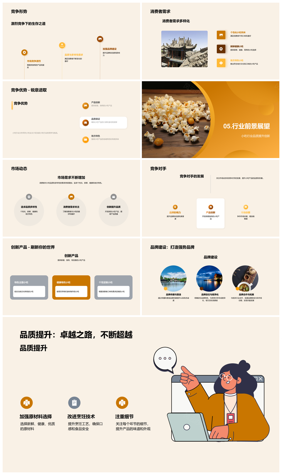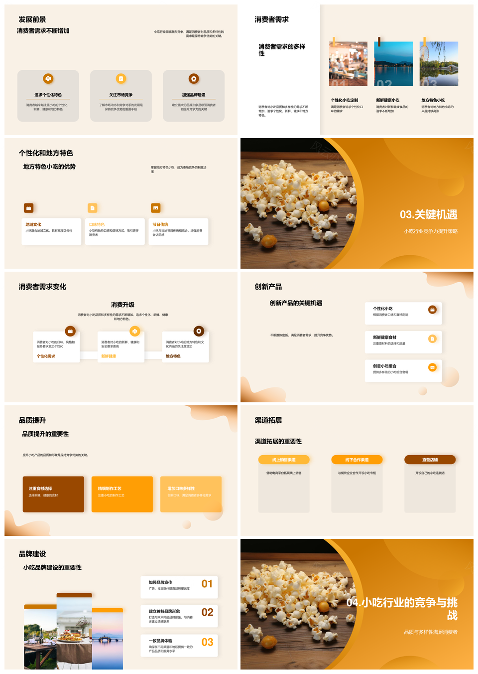 风云办公提供的小吃行业趋势规模需求增长前景分析PPT模板,下载格式为pptx,一共27页,作品中文字及图均可以修改和编辑,图片更改请在作品中右键图片并更换,文字修改请直接点击文字进行修改。