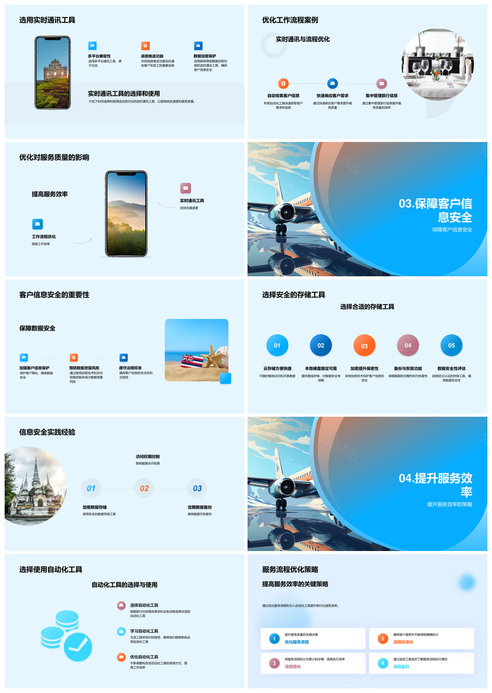 风云办公提供的旅游服务优化提效安全保障自动化PPT模板,下载格式为pptx,一共23页,作品中文字及图均可以修改和编辑,图片更改请在作品中右键图片并更换,文字修改请直接点击文字进行修改。