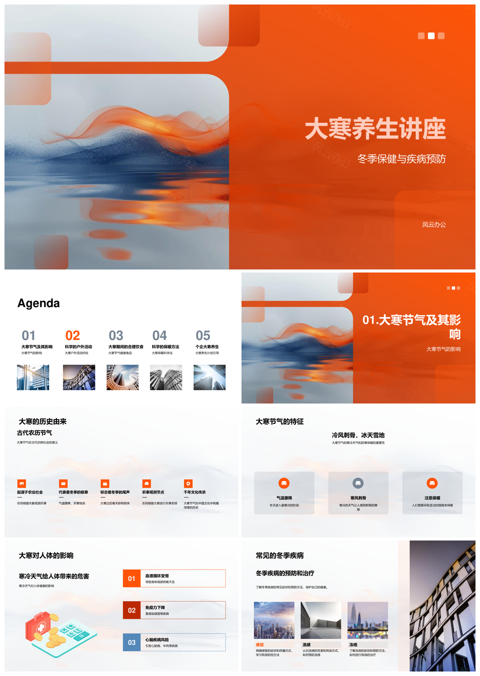 这是一张2025大寒养生保健防病保暖饮食户外活动指南PPT模板,包含2025、大寒、养生、保健、防病、保暖、饮食、户外、活动、指南等主题内容,也可用作2025大寒养生保健防病、大寒养生保健防病、养生保健防病保暖、保健防病保暖饮食、防病保暖饮食户外、保暖饮食户外活动、饮食户外活动指南、大寒养生保健、养生保健防病、保健防病保暖、防病保暖饮食、保暖饮食户外、饮食户外活动、户外活动指南、大寒防病保暖等PPT场景使用。 风云办公提供的2025大寒养生保健防病保暖饮食户外活动指南PPT模板,下载格式为pptx,一共33页,作品中文字及图均可以修改和编辑,图片更改请在作品中右键图片并更换,文字修改请直接点击文字进行修改。