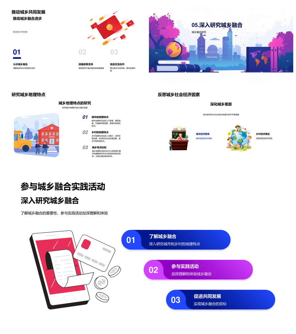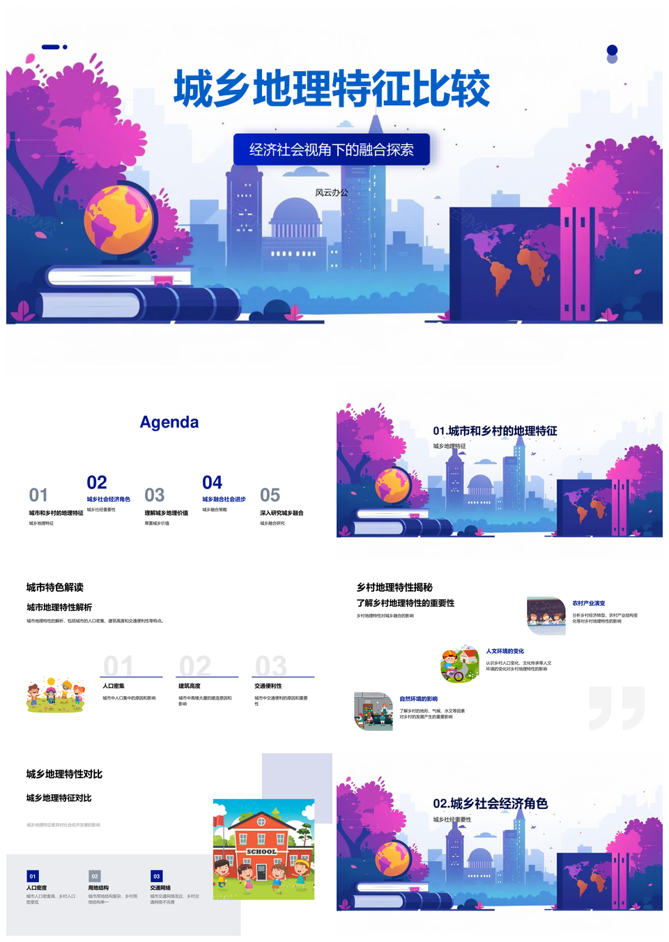 风云办公提供的城乡地理经济社会特征比较融合探索PPT模板,下载格式为pptx,一共23页,作品中文字及图均可以修改和编辑,图片更改请在作品中右键图片并更换,文字修改请直接点击文字进行修改。
