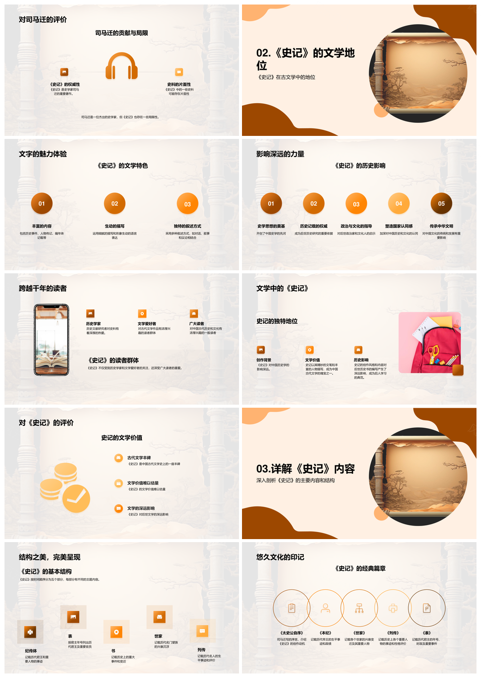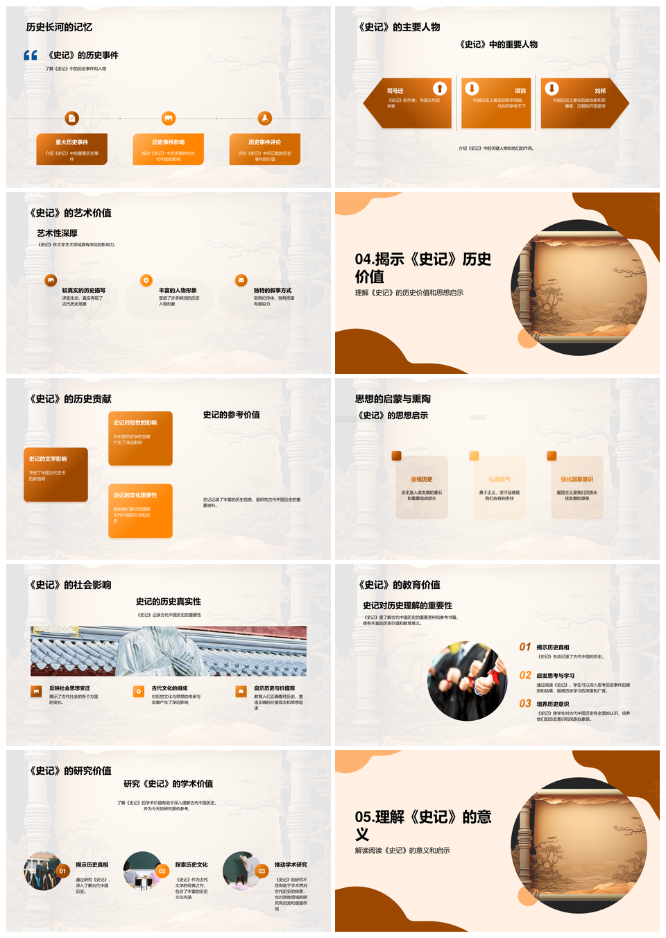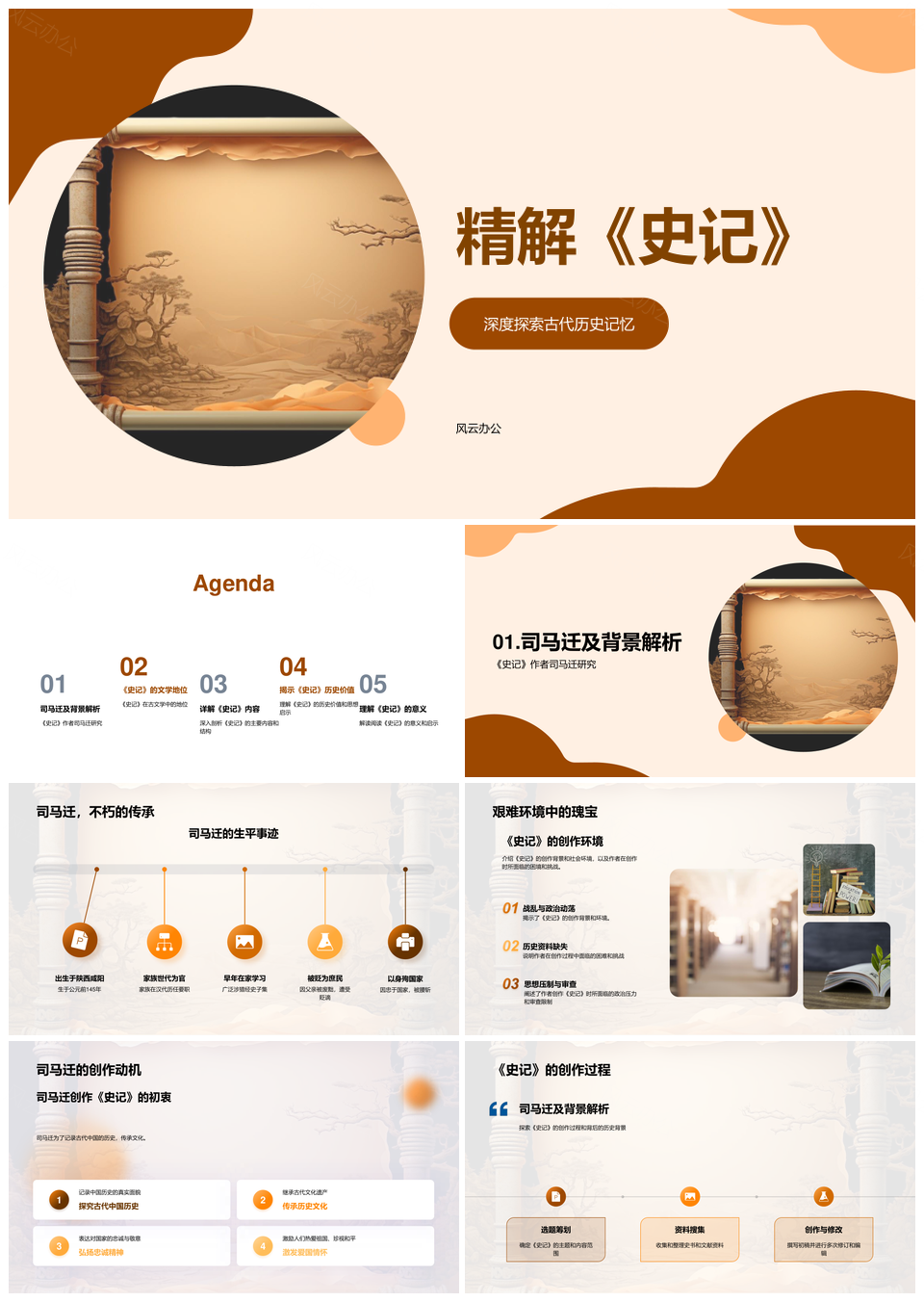 风云办公提供的司马迁史记文史特色与历史思想探析PPT模板,下载格式为pptx,一共33页,作品中文字及图均可以修改和编辑,图片更改请在作品中右键图片并更换,文字修改请直接点击文字进行修改。