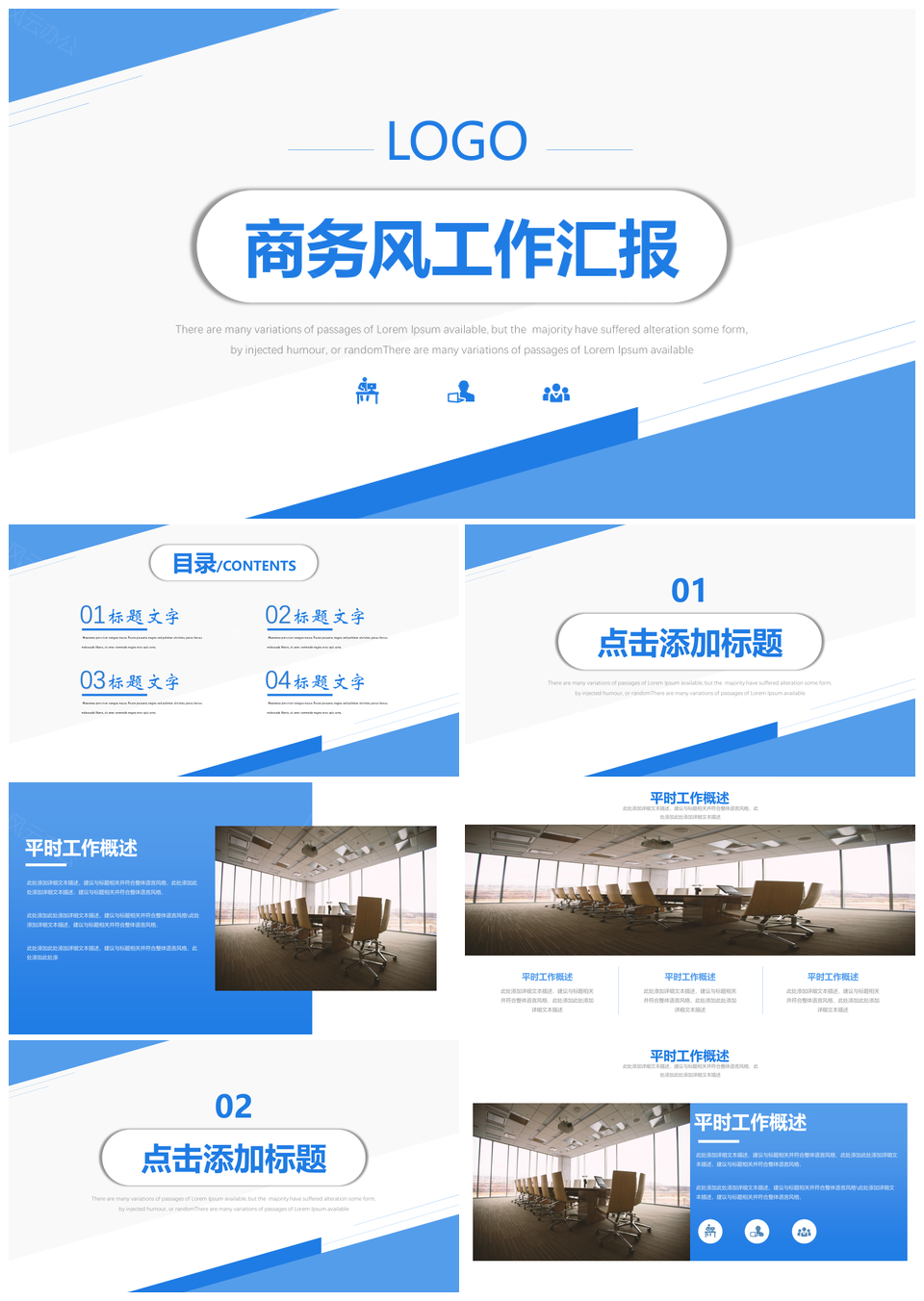 蓝色工作总结计划简约风商务风工作汇报PPT模板