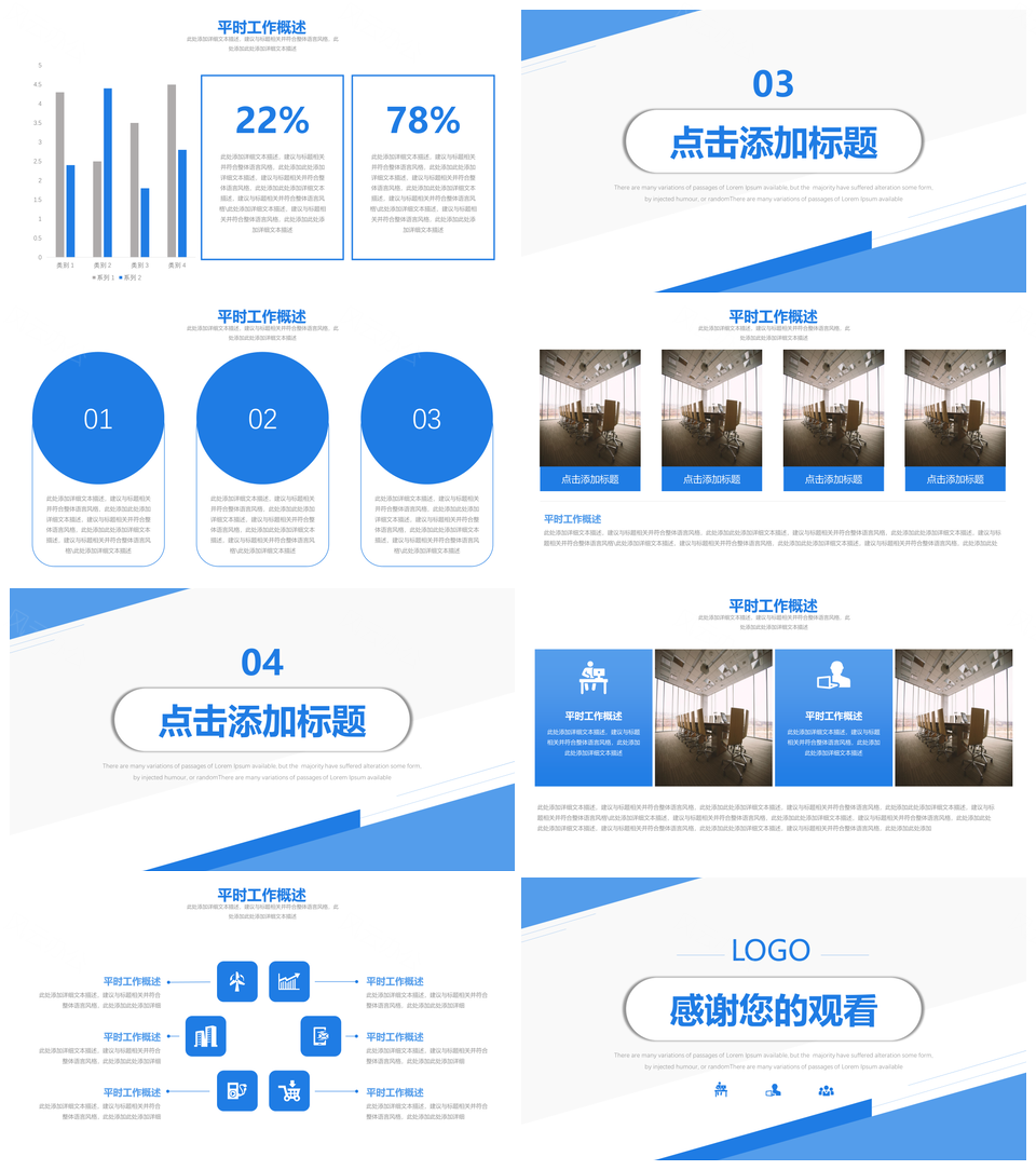 蓝色工作汇报总结计划清新极简约风商务风PPT模板