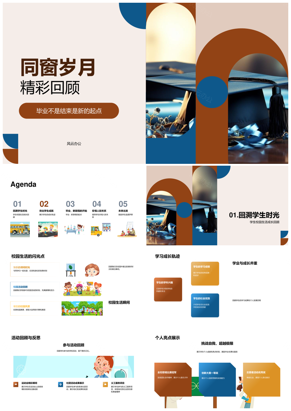 风云办公提供的毕业典礼同窗成长逐梦学成启程PPT模板,下载格式为pptx,一共33页,作品中文字及图均可以修改和编辑,图片更改请在作品中右键图片并更换,文字修改请直接点击文字进行修改。