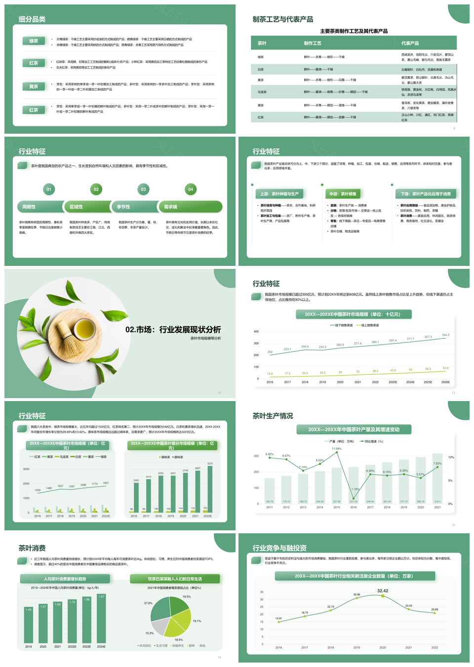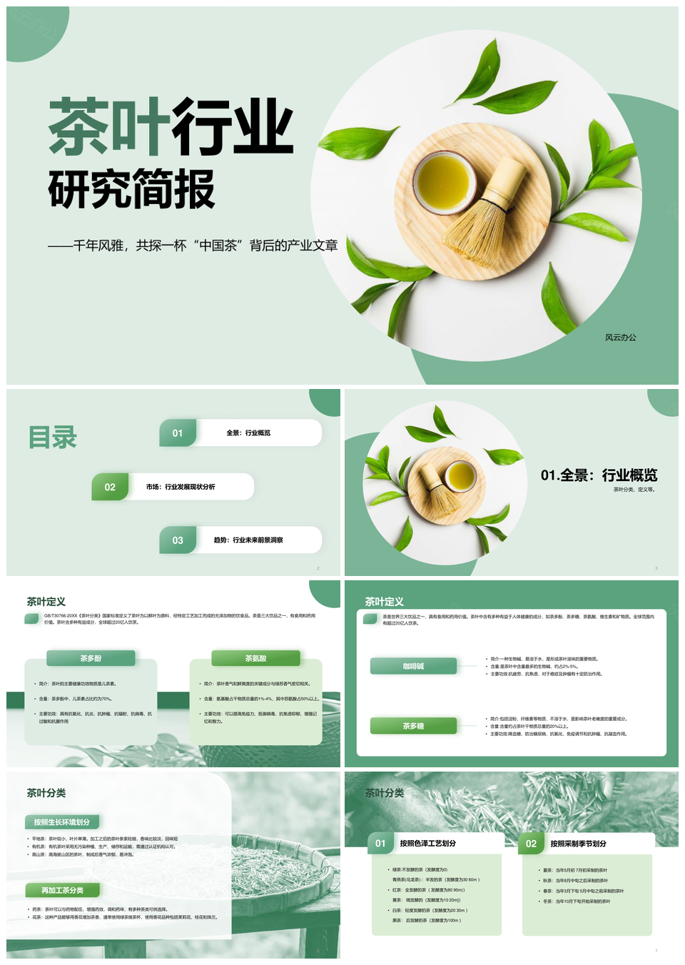 风云办公提供的绿色茶叶产业研究报告行业洞察PPT模板,下载格式为pptx,一共22页,作品中文字及图均可以修改和编辑,图片更改请在作品中右键图片并更换,文字修改请直接点击文字进行修改。