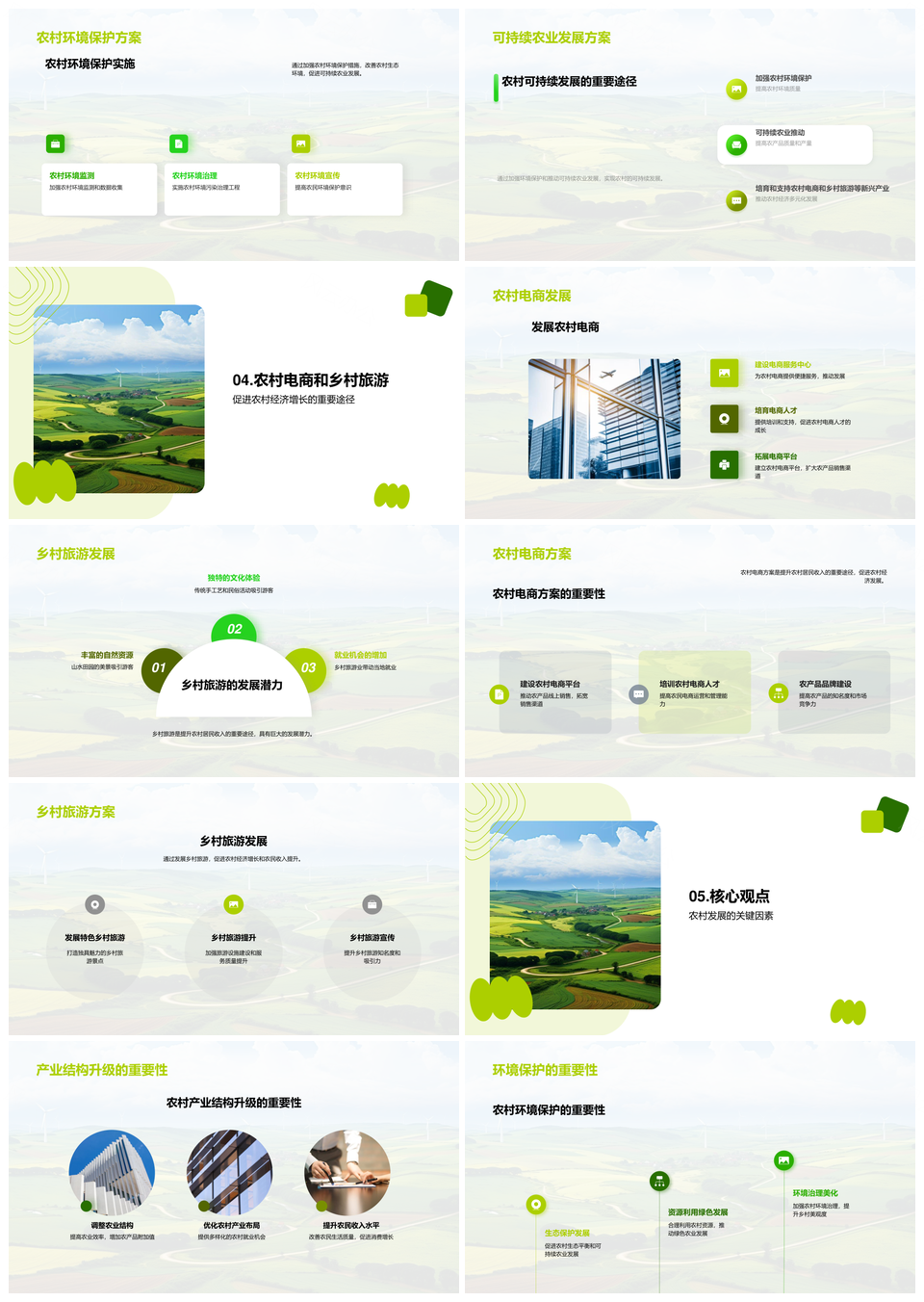 风云办公提供的绿色创新驱动农村产业升级振兴PPT模板,下载格式为pptx,一共35页,作品中文字及图均可以修改和编辑,图片更改请在作品中右键图片并更换,文字修改请直接点击文字进行修改。