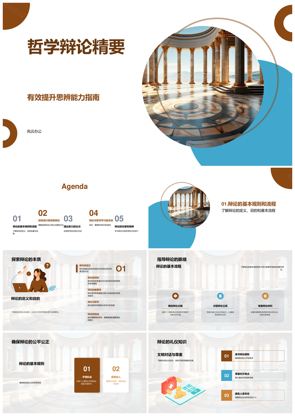 风云办公提供的哲学辩论规则流程与古希腊思辨精要PPT模板,下载格式为pptx,一共29页,作品中文字及图均可以修改和编辑,图片更改请在作品中右键图片并更换,文字修改请直接点击文字进行修改。