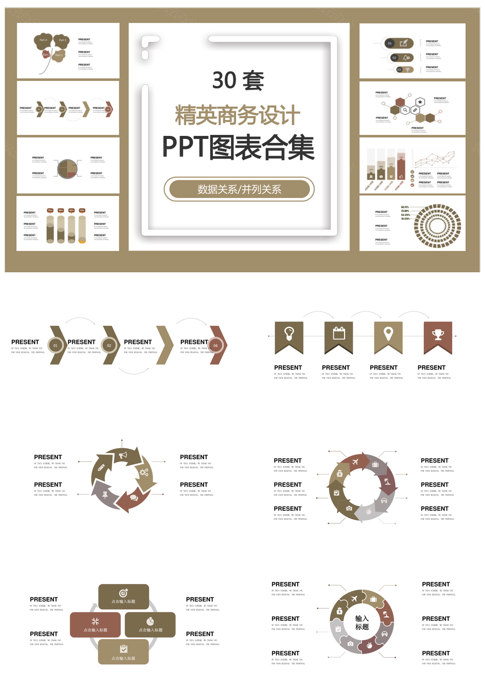 风云办公提供的精英商务设计数据关系并列关系PPT图表合集,下载格式为pptx,一共31页,作品中文字及图均可以修改和编辑,图片更改请在作品中右键图片并更换,文字修改请直接点击文字进行修改。