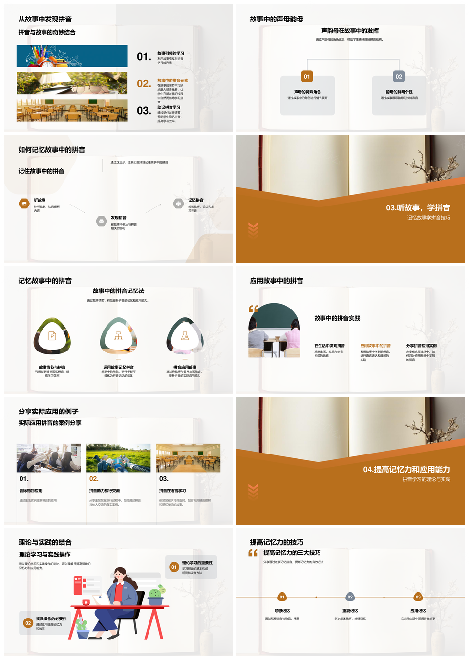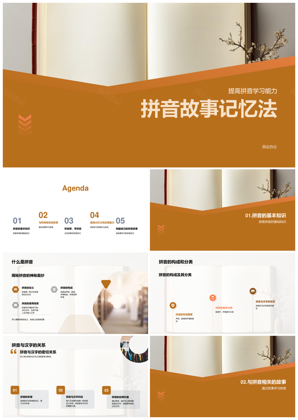风云办公提供的拼音故事记忆法提升汉字学习能力PPT模板,下载格式为pptx,一共23页,作品中文字及图均可以修改和编辑,图片更改请在作品中右键图片并更换,文字修改请直接点击文字进行修改。