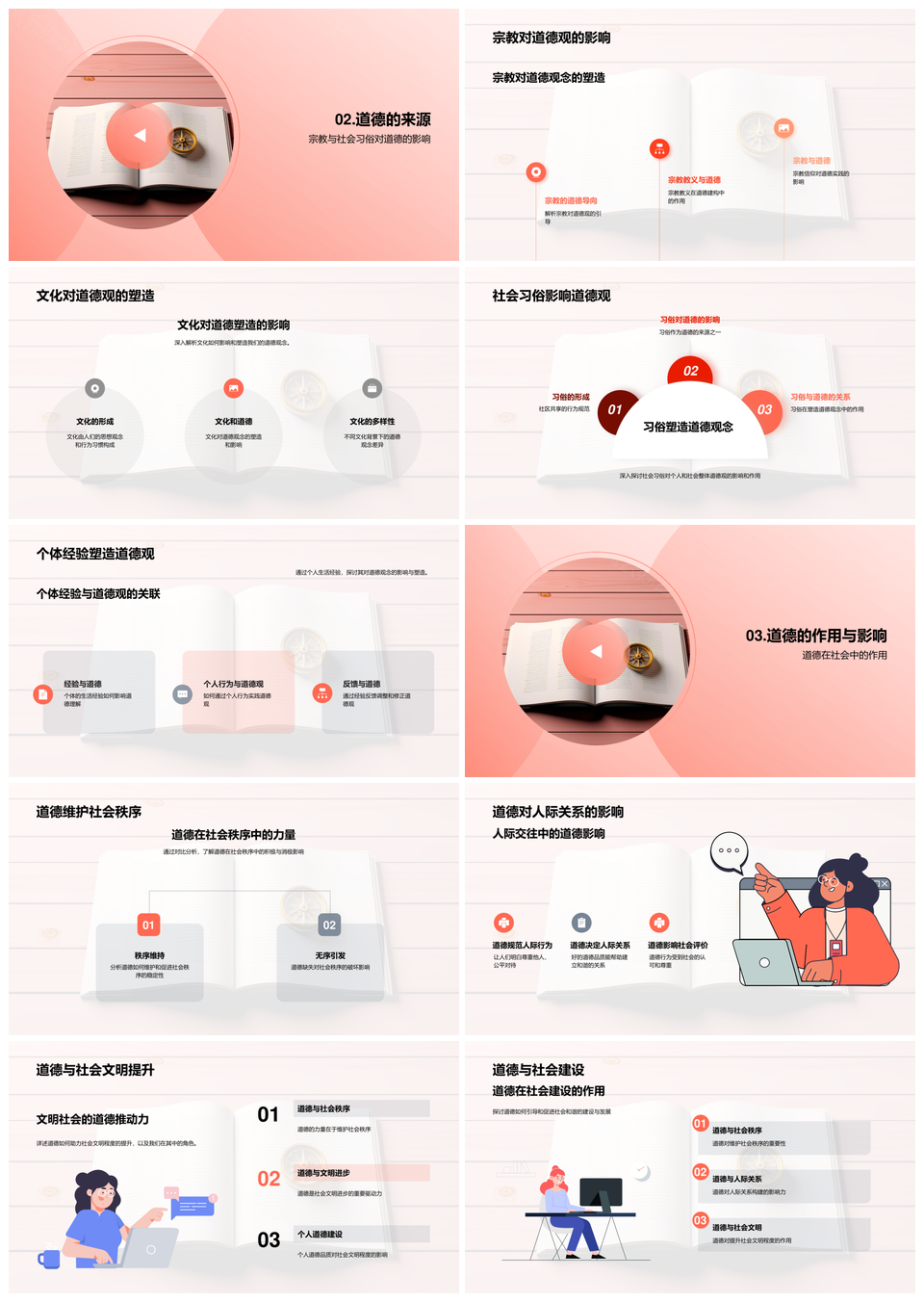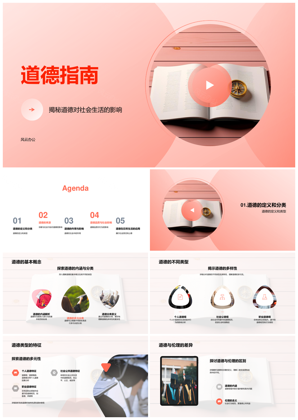 风云办公提供的道德基本概念指南书籍PPT模板,下载格式为pptx,一共28页,作品中文字及图均可以修改和编辑,图片更改请在作品中右键图片并更换,文字修改请直接点击文字进行修改。