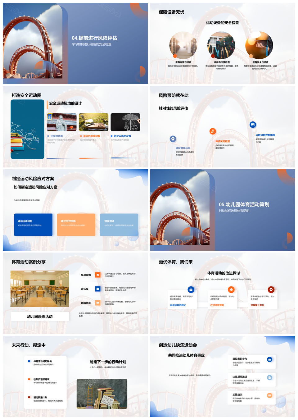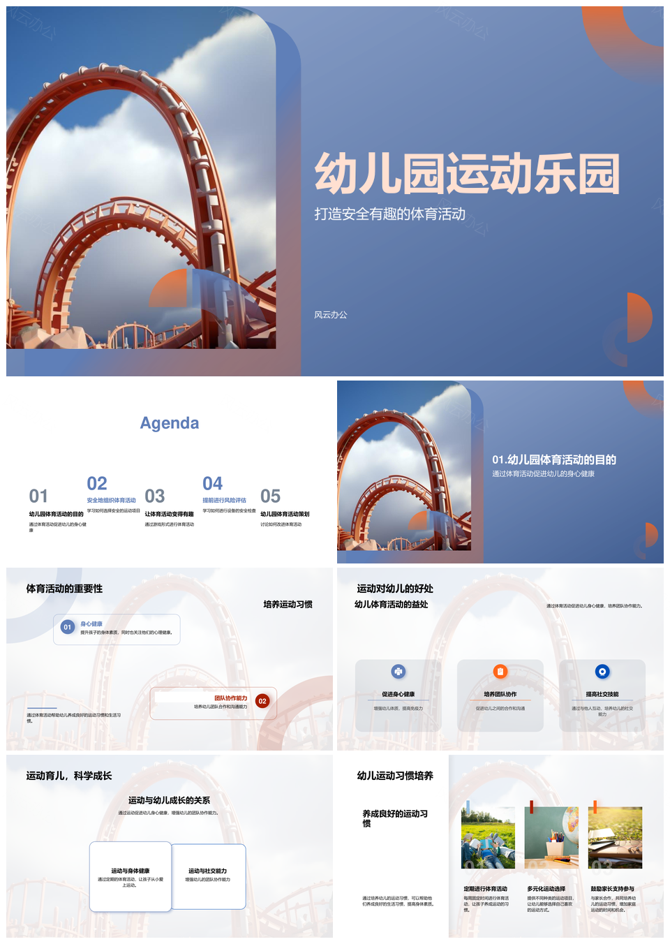 风云办公提供的幼儿园运动乐园安全体育促身心健康PPT模板,下载格式为pptx,一共28页,作品中文字及图均可以修改和编辑,图片更改请在作品中右键图片并更换,文字修改请直接点击文字进行修改。
