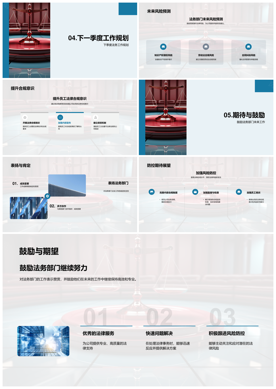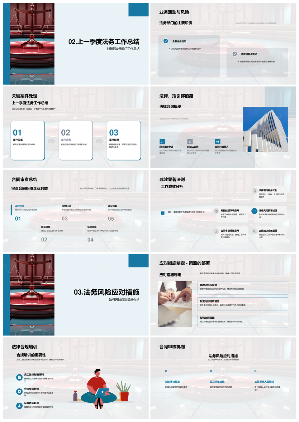 法务部门法律风险合同审查合规培训季度总结PPT模板