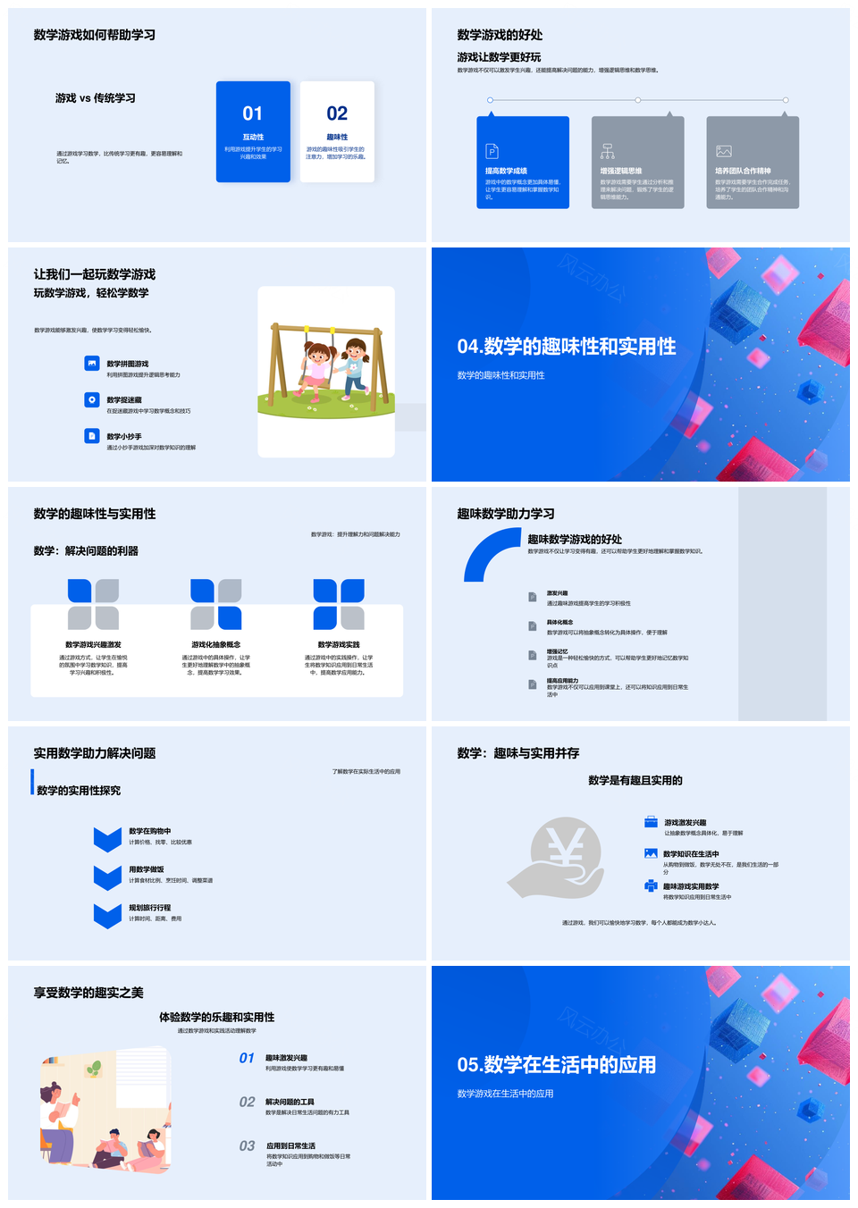 风云办公提供的小学数学知识点游戏教学课件模板,下载格式为pptx,一共33页,作品中文字及图均可以修改和编辑,图片更改请在作品中右键图片并更换,文字修改请直接点击文字进行修改。