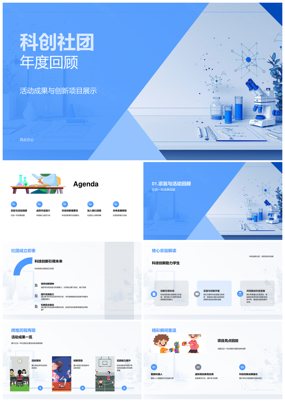 风云办公提供的科创社团年度科技创新成果回顾PPT模板,下载格式为pptx,一共33页,作品中文字及图均可以修改和编辑,图片更改请在作品中右键图片并更换,文字修改请直接点击文字进行修改。