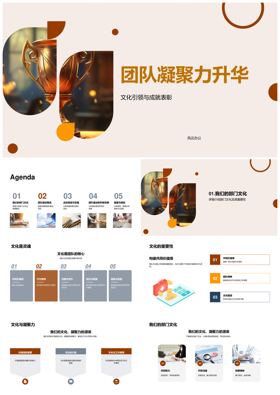 文化引领团队凝聚力共建表彰成就核心升华PPT模板
