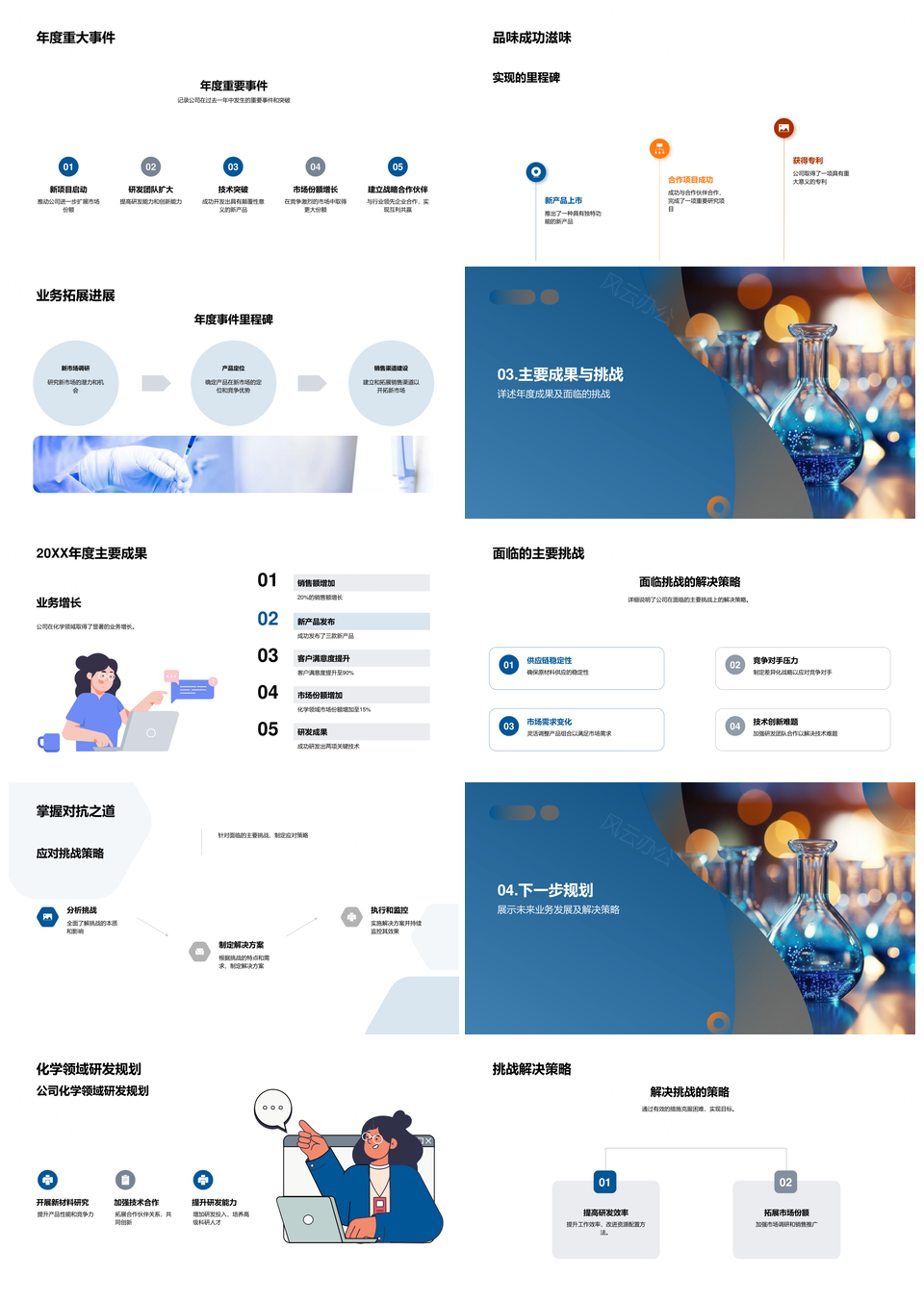 这是一张2025化学业务年度研发里程碑挑战应对总结PPT模板,包含2025、化学业务、年度、研发、里程碑、挑战、应对、总结等主题内容,也可用作2025化学业务年度研发、化学业务研发里程碑挑战、业务研发里程碑挑战应对、研发里程碑挑战应对总结、2025化学业务研发、化学业务年度研发、年度研发里程碑挑战、业务年度研发里程碑、研发里程碑挑战应对、里程碑挑战应对总结、化学研发里程碑挑战、应对挑战总结、2025化学业务、业务研发挑战、研发挑战应对等PPT场景使用。 风云办公提供的2025化学业务年度研发里程碑挑战应对总结PPT模板,下载格式为pptx,一共22页,作品中文字及图均可以修改和编辑,图片更改请在作品中右键图片并更换,文字修改请直接点击文字进行修改。