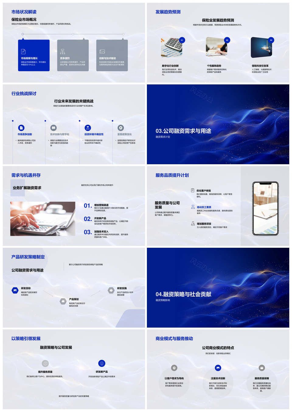 2025保险融资计划书财务策略行业趋势服务提升PPT模板推荐