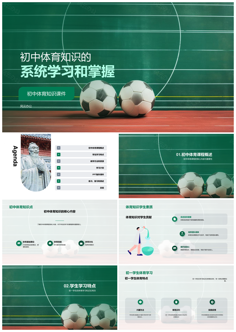 风云办公提供的初一体育系统学习课件与器材掌握PPT模板,下载格式为pptx,一共24页,作品中文字及图均可以修改和编辑,图片更改请在作品中右键图片并更换,文字修改请直接点击文字进行修改。