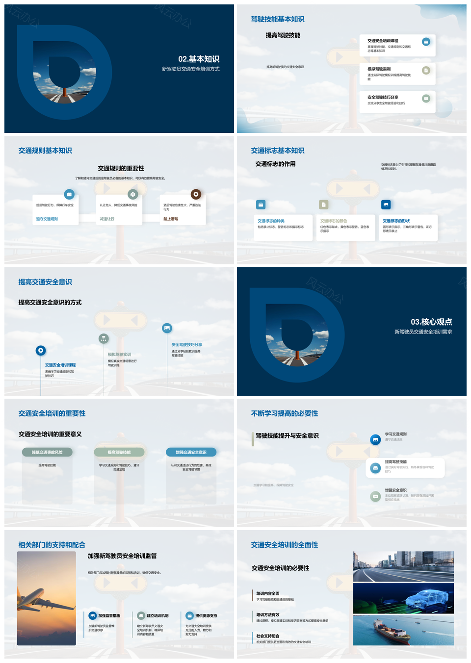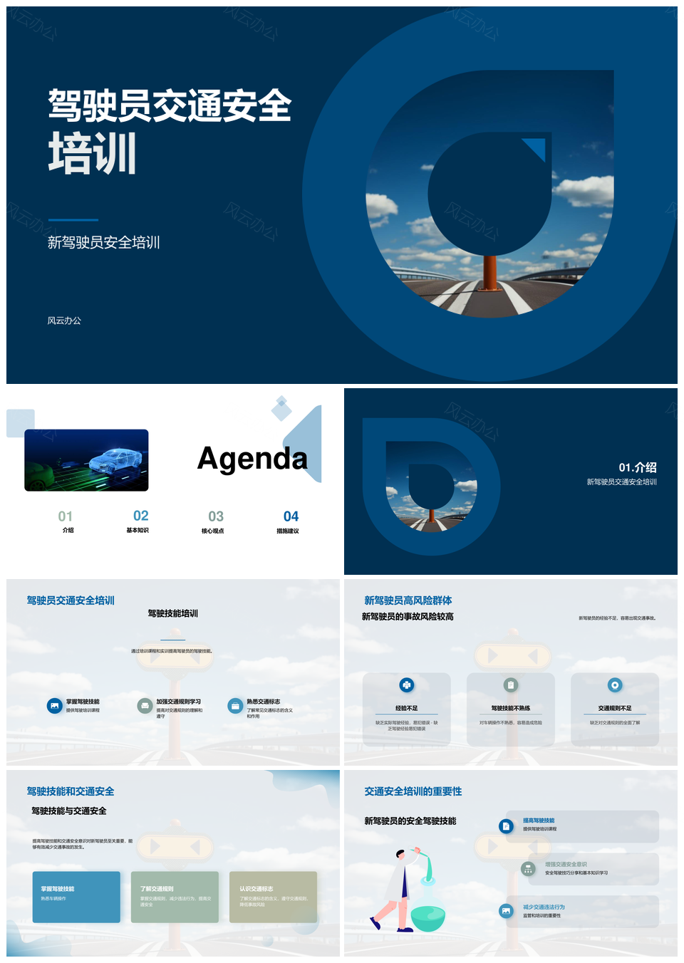 风云办公提供的新驾驶员交通安全技能规则意识培训PPT模板,下载格式为pptx,一共23页,作品中文字及图均可以修改和编辑,图片更改请在作品中右键图片并更换,文字修改请直接点击文字进行修改。