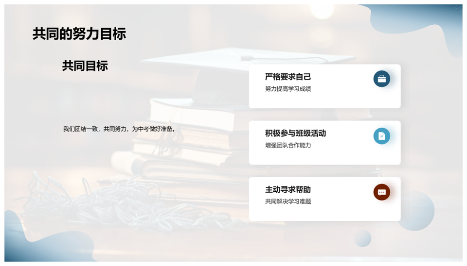 这是一张初三班级主任班会助力中考成功学习任务PPT模板,包含初三班级、主任、班会、助力、中考、成功、学习、任务等主题内容,也可用作初三班级主任班会助力中考成功、初三班级主任助力中考成功、初三班级班会助力中考成功、初三班级主任班会助力、班级主任班会助力中考成功、初三班级助力中考成功学习、初三班会助力中考成功学习、班会助力中考成功学习任务、初三班级主任助力学习任务、初三主任班会助力中考成功、班级主任助力中考成功学习、班会助力成功学习任务、初三班级主任助力中考、初三班级班会助力中考、班级主任班会助力中考、初三助力中考成功学习等PPT场景使用。 风云办公提供的初三班级主任班会助力中考成功学习任务PPT模板,下载格式为pptx,一共29页,作品中文字及图均可以修改和编辑,图片更改请在作品中右键图片并更换,文字修改请直接点击文字进行修改。