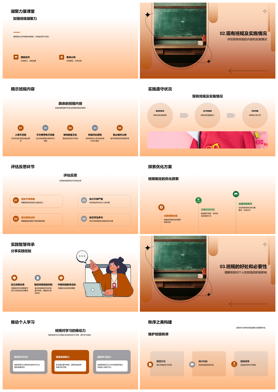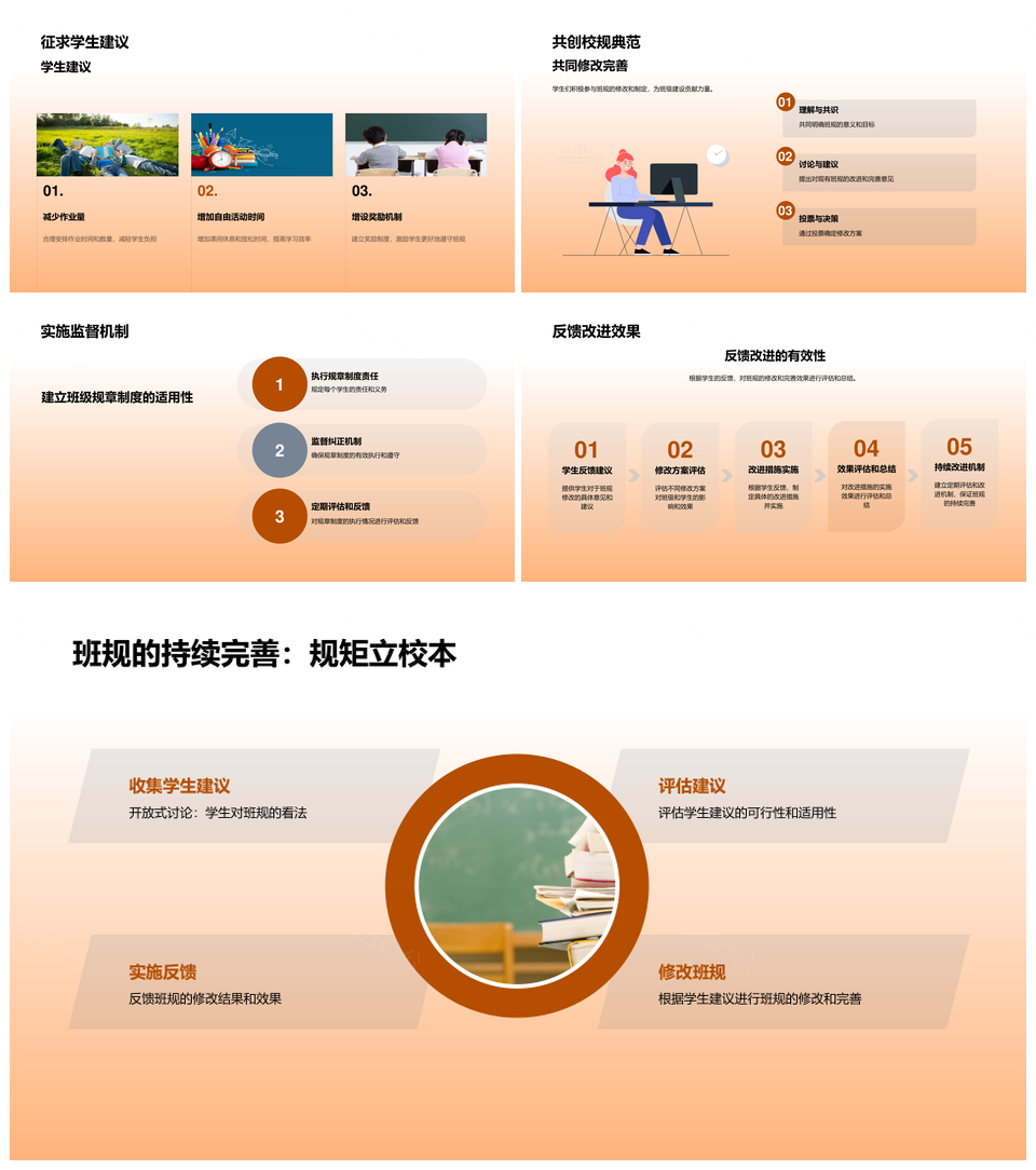这是一张班规共创优化班级环境提升学习效率PPT模板,包含班规、共创、优化、班级、环境、提升、学习、效率等主题内容,也可用作班规共创优化班级、共创优化班级环境、环境提升学习效率、班规共创优化、共创优化班级、优化班级环境、提升学习效率、班规共创、共创优化、优化班级、班级环境、环境提升、提升学习、学习效率、班级环境提升等PPT场景使用。