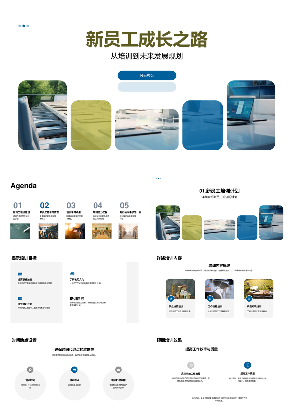 风云办公提供的新员工培训技能提升与发展规划PPT模板,下载格式为pptx,一共28页,作品中文字及图均可以修改和编辑,图片更改请在作品中右键图片并更换,文字修改请直接点击文字进行修改。