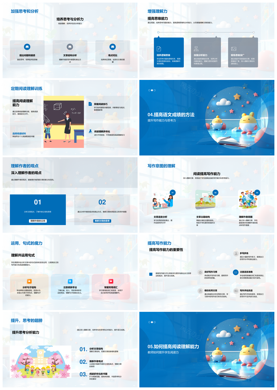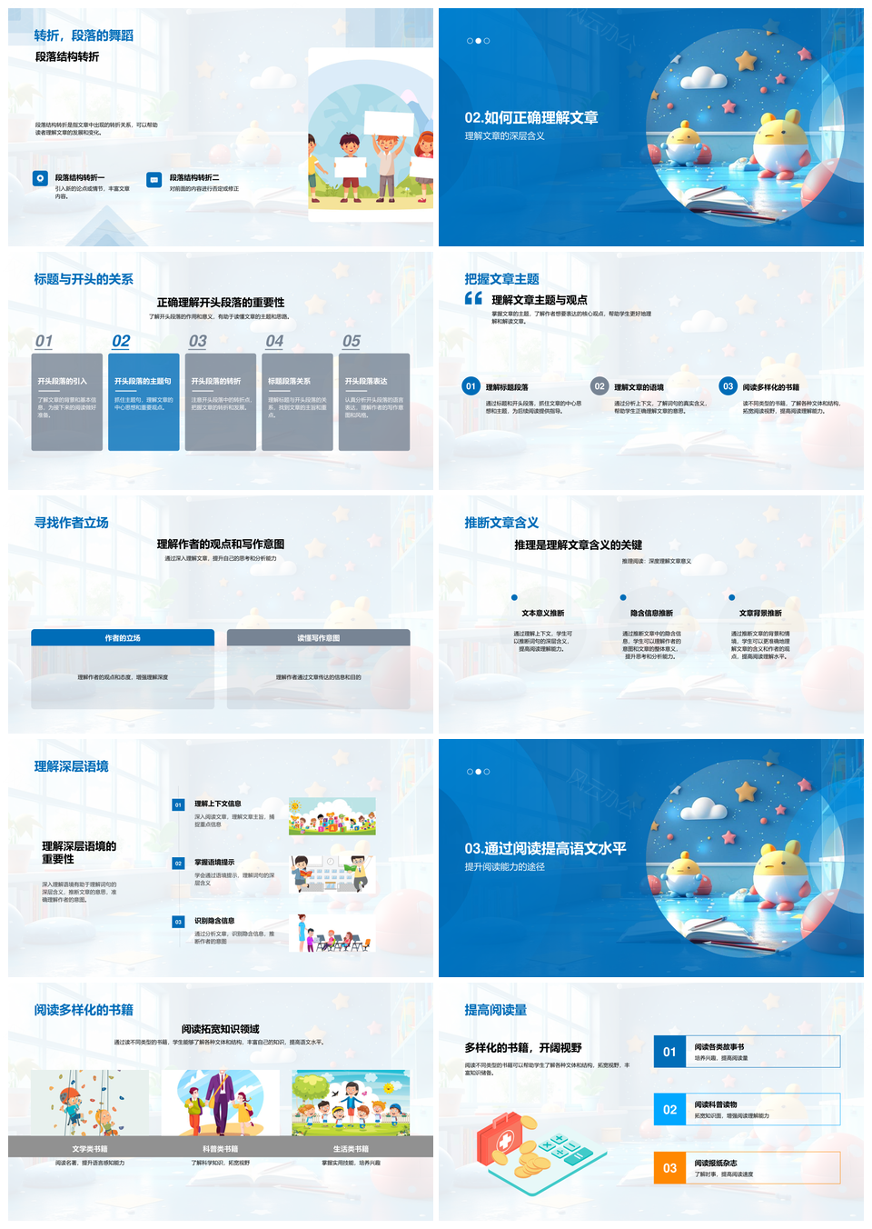 阅读理解技巧提升结构观点写作多样书籍PPT模板推荐
