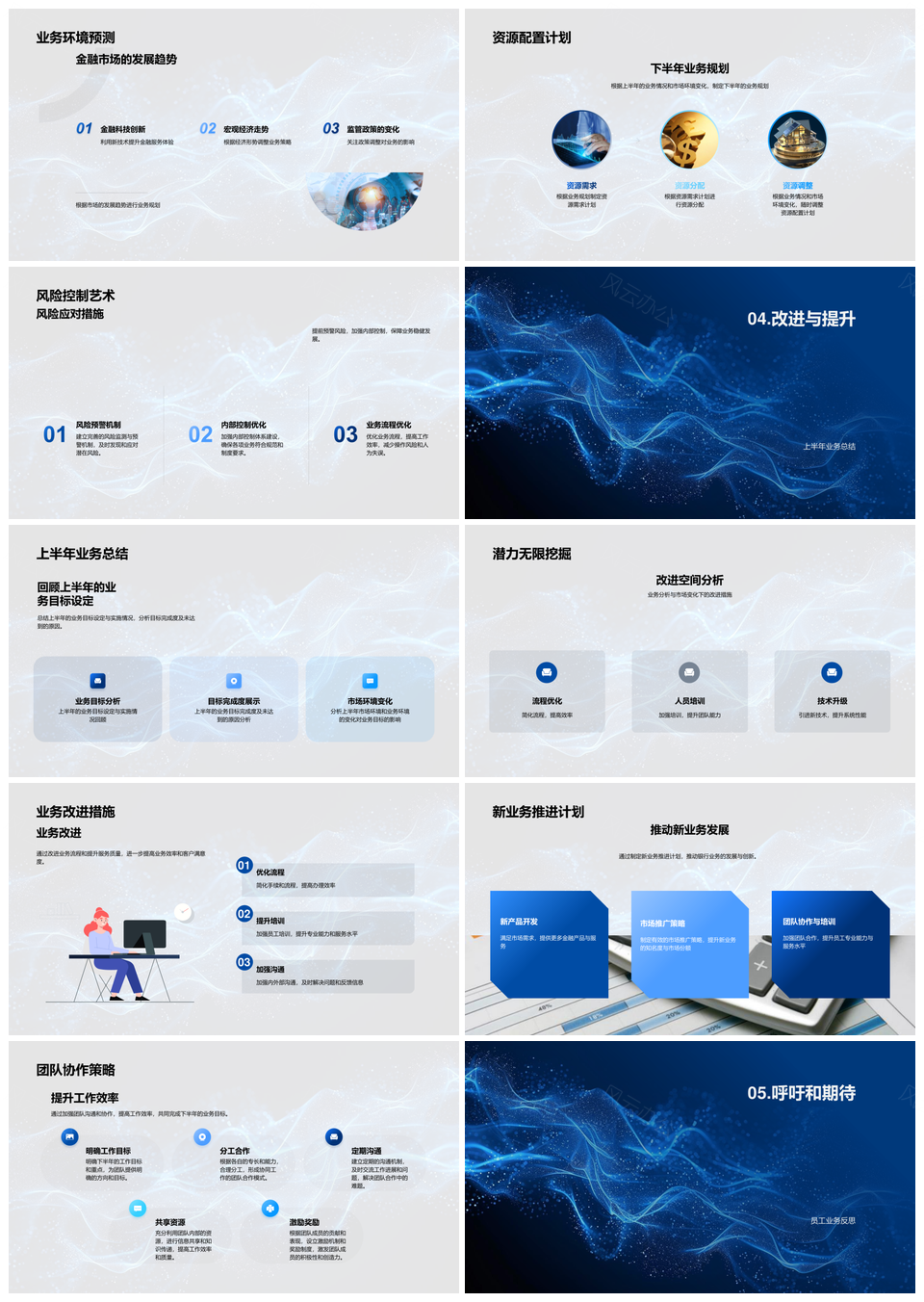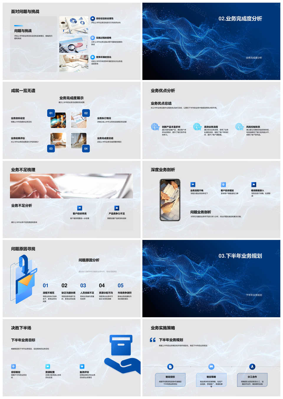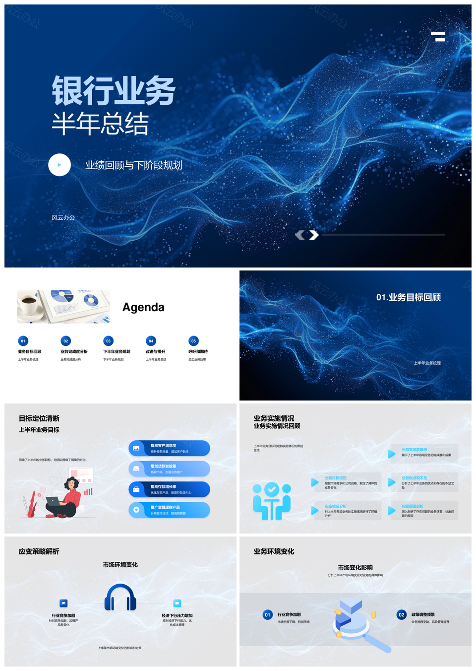 风云办公提供的银行业务半年业绩总结与下阶段规划PPT模板,下载格式为pptx,一共33页,作品中文字及图均可以修改和编辑,图片更改请在作品中右键图片并更换,文字修改请直接点击文字进行修改。