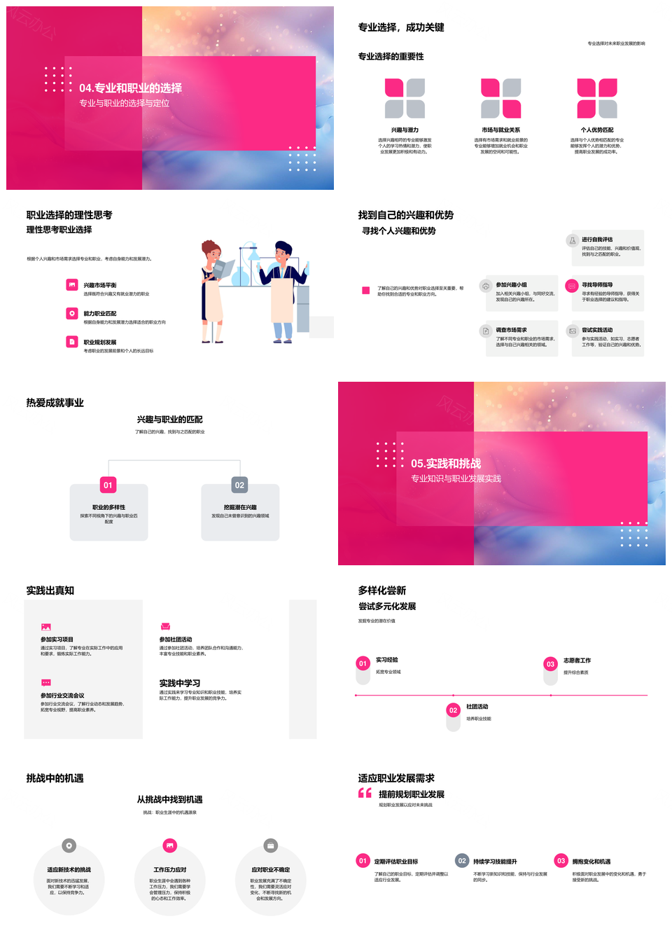 专业职业规划挑战实践应用经历选择关系PPT模板推荐