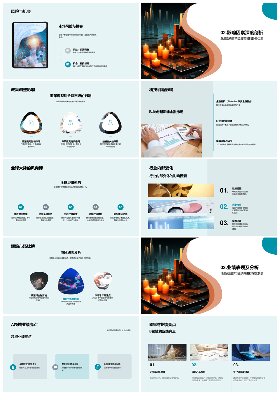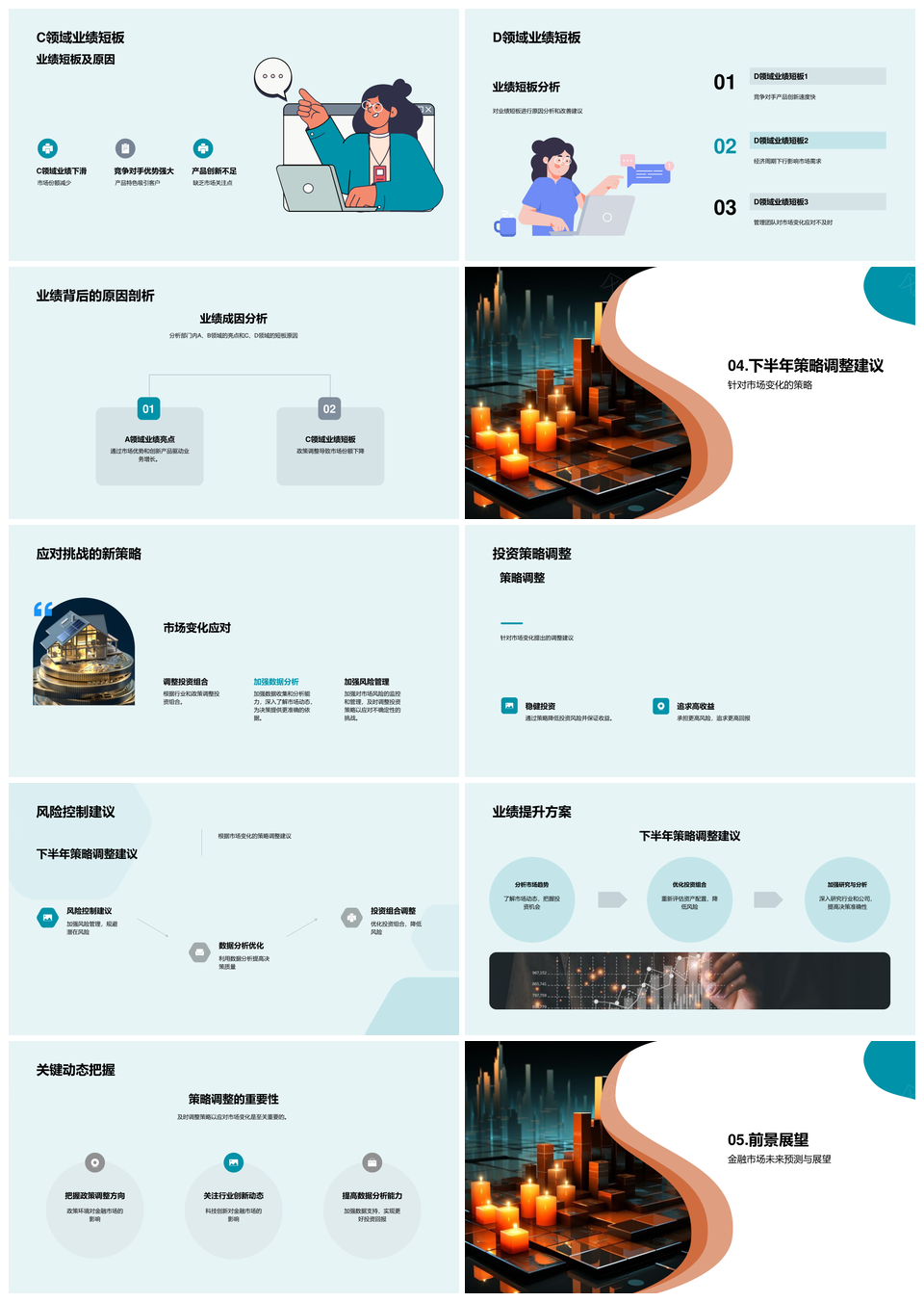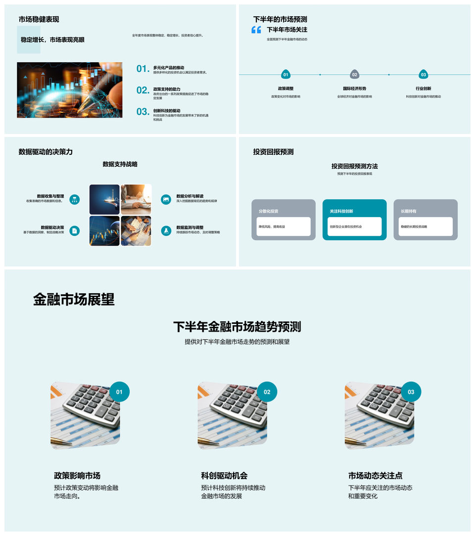 金融市场半年报策略调整政策业绩科技图解PPT模板推荐