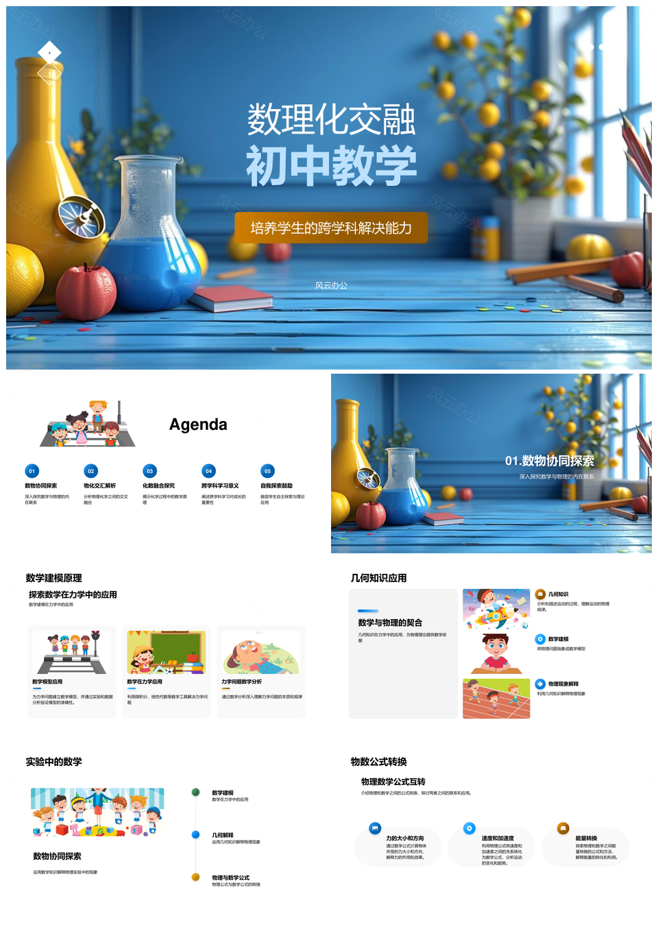 风云办公提供的初中数理化跨学科交融建模创新实践PPT模板,下载格式为pptx,一共33页,作品中文字及图均可以修改和编辑,图片更改请在作品中右键图片并更换,文字修改请直接点击文字进行修改。