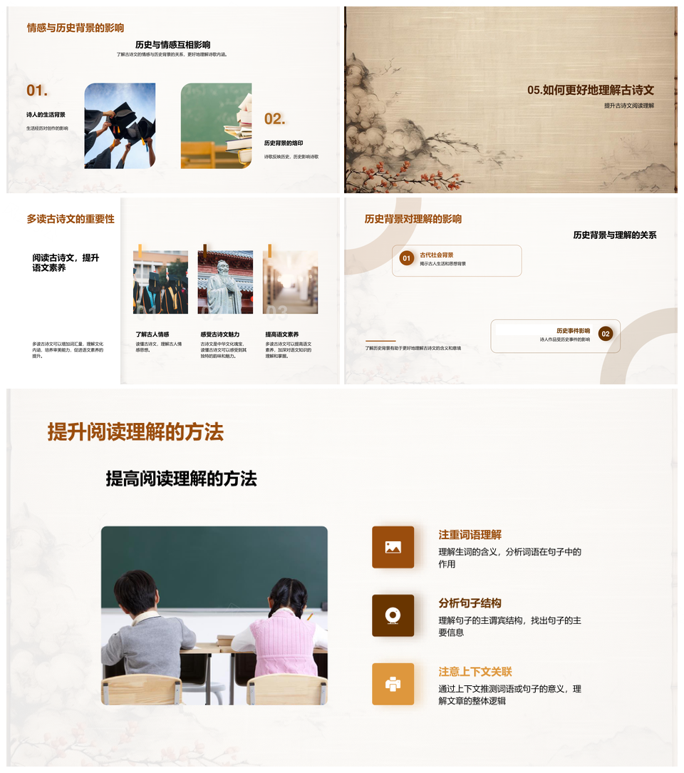 风云办公提供的古诗魂韵艺溯源流诗人卷轴意象展PPT模板,下载格式为pptx,一共23页,作品中文字及图均可以修改和编辑,图片更改请在作品中右键图片并更换,文字修改请直接点击文字进行修改。