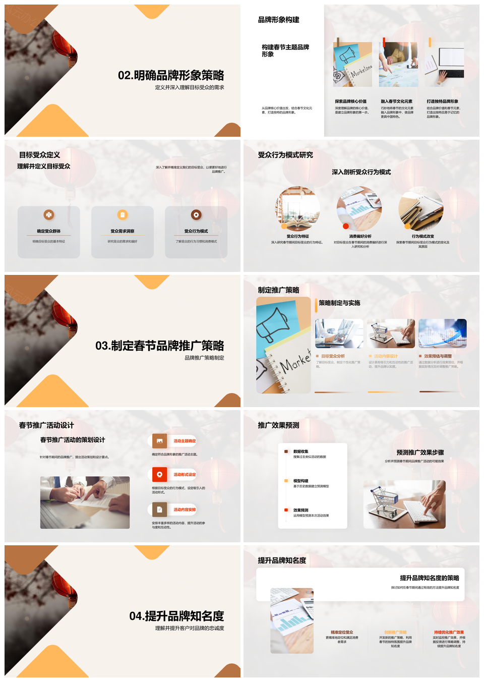 春节品牌推广策略活动设计受众行为灯笼知名度形象效果预测PPT模板推荐