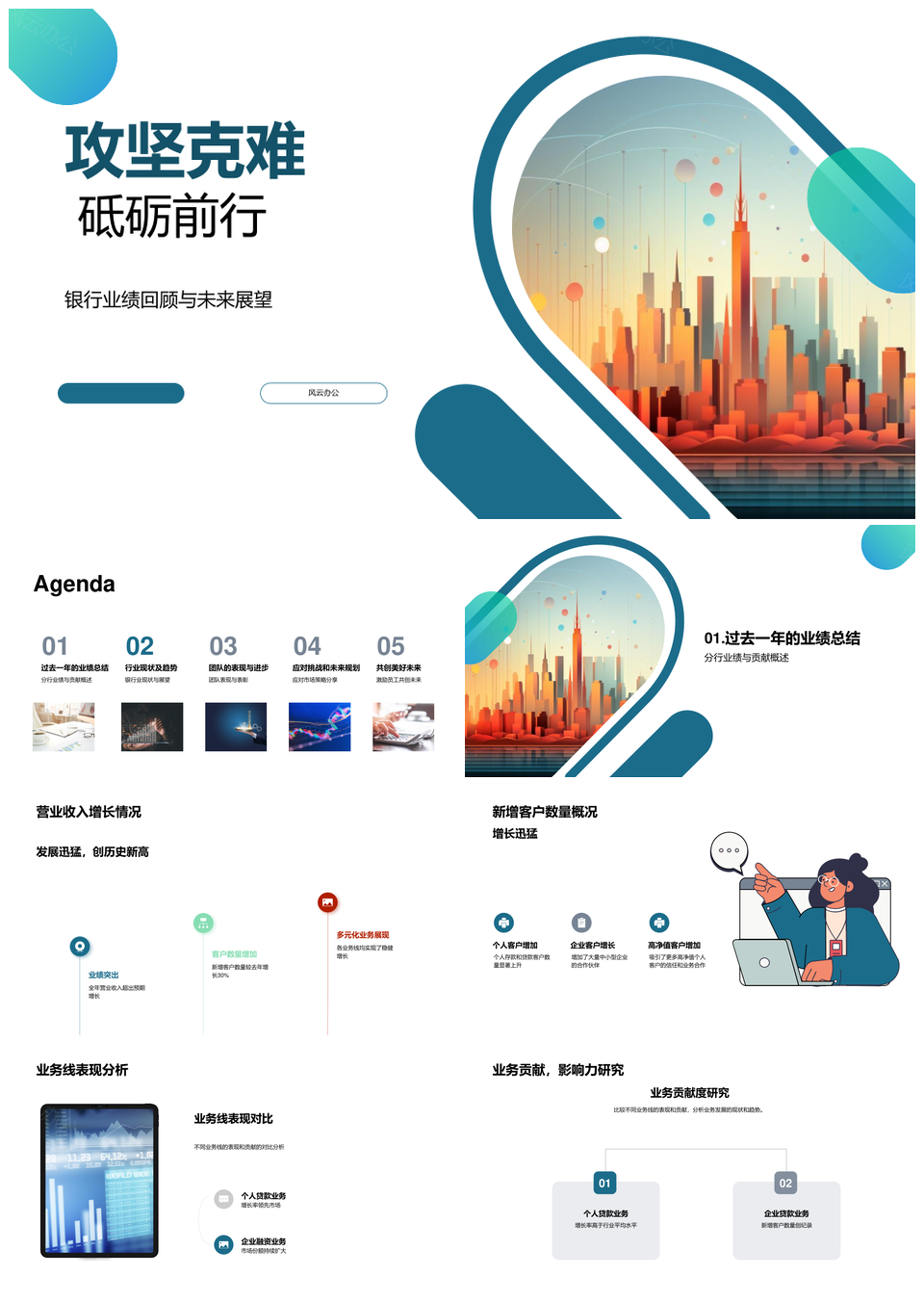 银行业绩展望营收客户增业务强团队优竞市变PPT模板