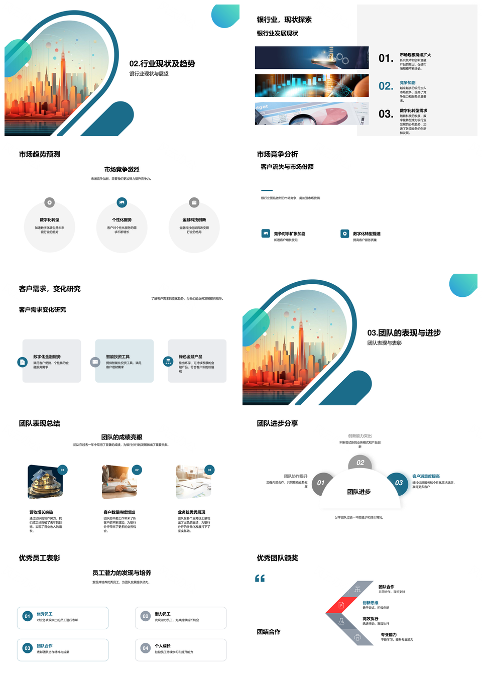 银行业绩展望营收客户增业务强团队优竞市变PPT模板推荐
