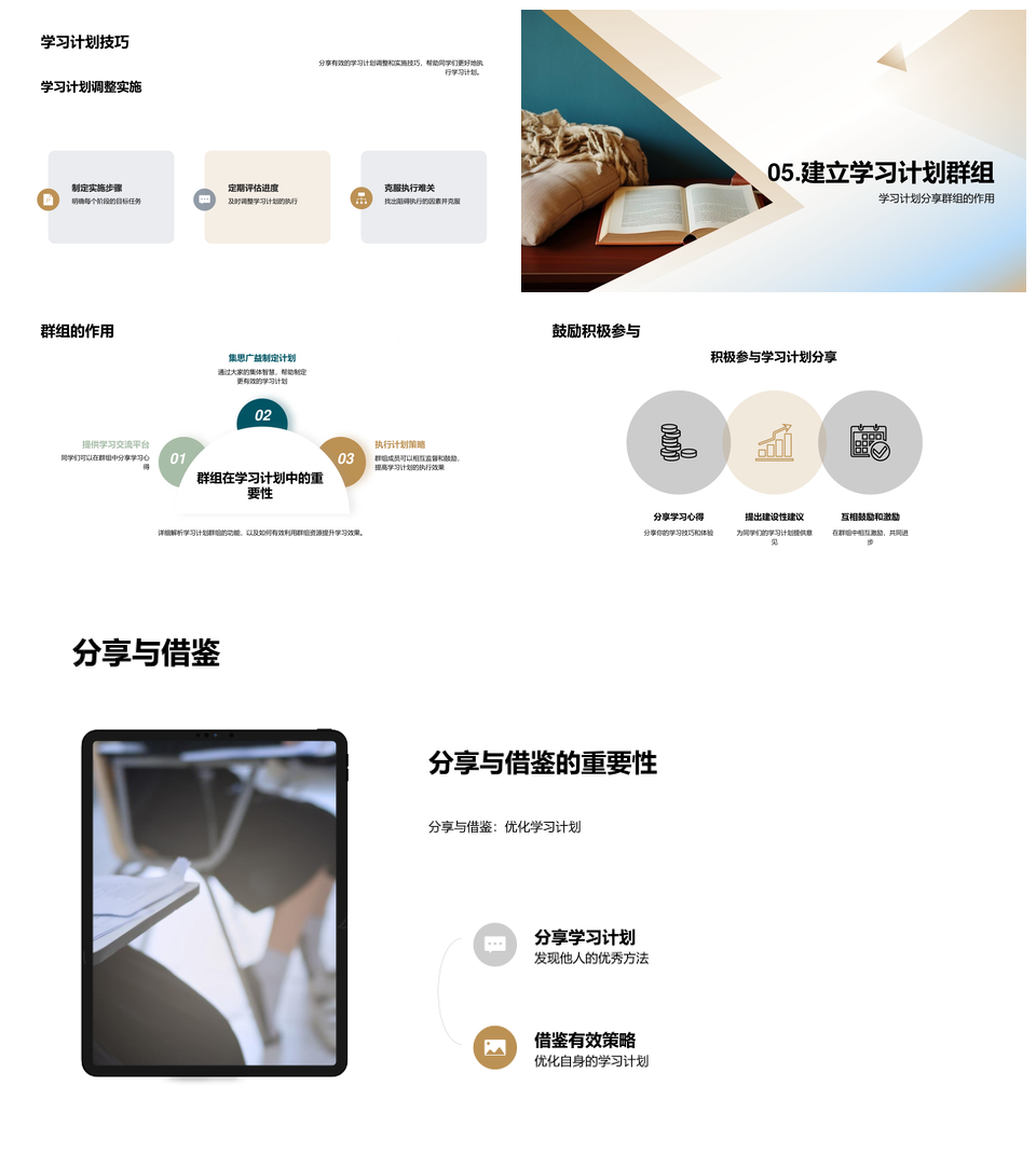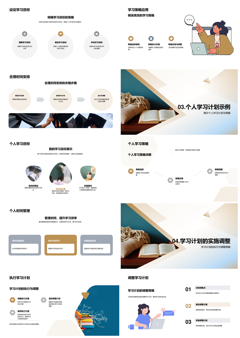 个性学习计划目标策略时间管理群组分享书调整实施PPT模板推荐
