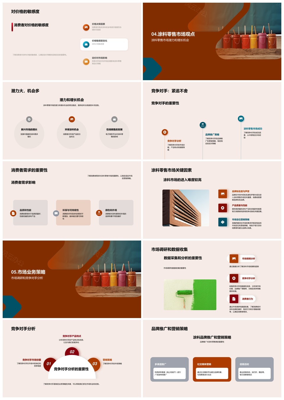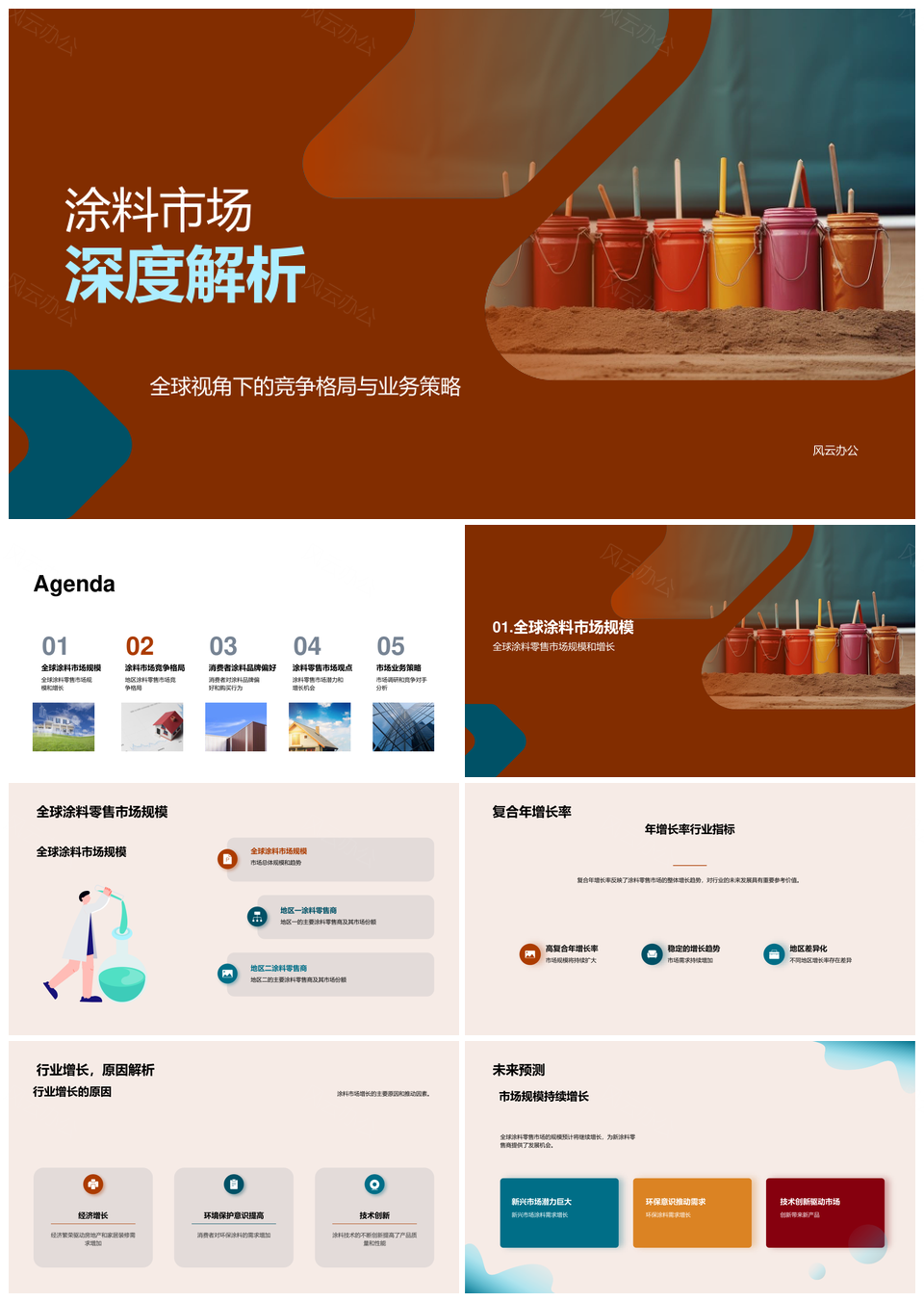 风云办公提供的涂料零售市场规模增长预测与竞争分析PPT模板,下载格式为pptx,一共28页,作品中文字及图均可以修改和编辑,图片更改请在作品中右键图片并更换,文字修改请直接点击文字进行修改。