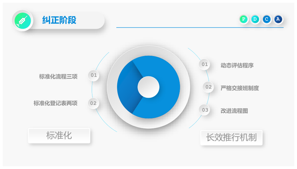 蓝色微立体医院护理PDCA品管圈案例汇报PPT模板推荐