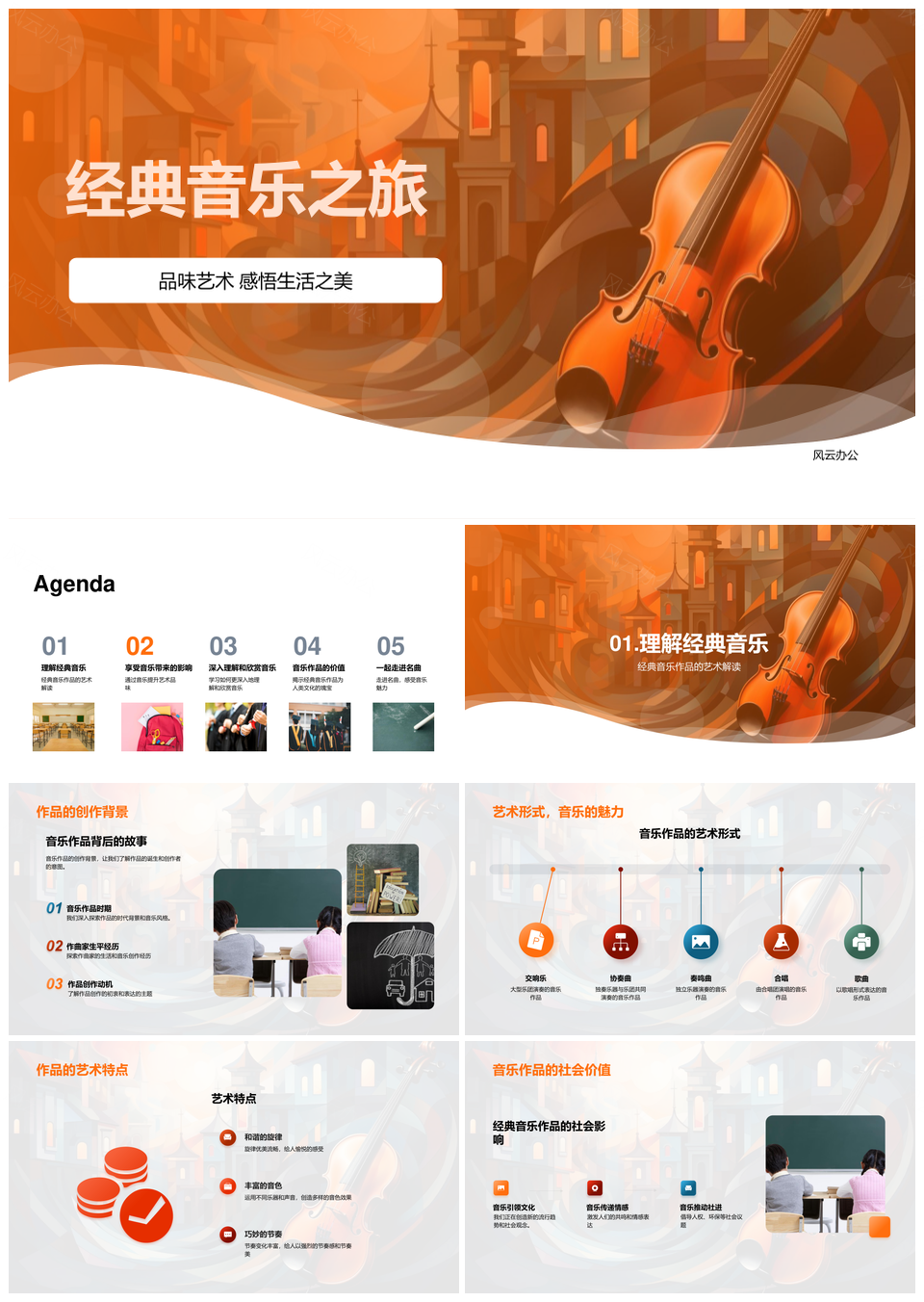 风云办公提供的经典音乐艺韵映世琴声情感人文PPT模板,下载格式为pptx,一共28页,作品中文字及图均可以修改和编辑,图片更改请在作品中右键图片并更换,文字修改请直接点击文字进行修改。