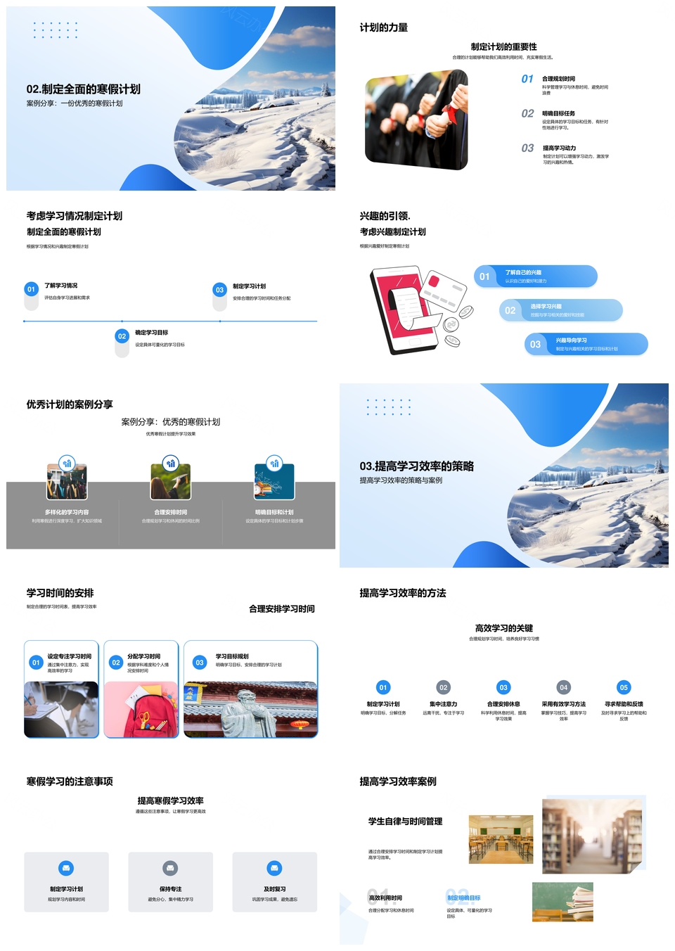 这是一张寒假高效学习冬景休憩成长计划PPT模板,包含寒假、高效学习、冬景、休憩、成长计划等主题内容,也可用作寒假高效学习成长计划、寒假高效学习冬景、高效学习冬景休憩、冬景休憩成长计划、寒假学习成长计划、寒假冬景休憩计划、高效学习成长计划、冬景休憩成长、寒假高效学习、高效学习计划、寒假休憩成长、休憩成长计划、冬景休憩计划、寒假成长计划、高效学习成长等PPT场景使用。