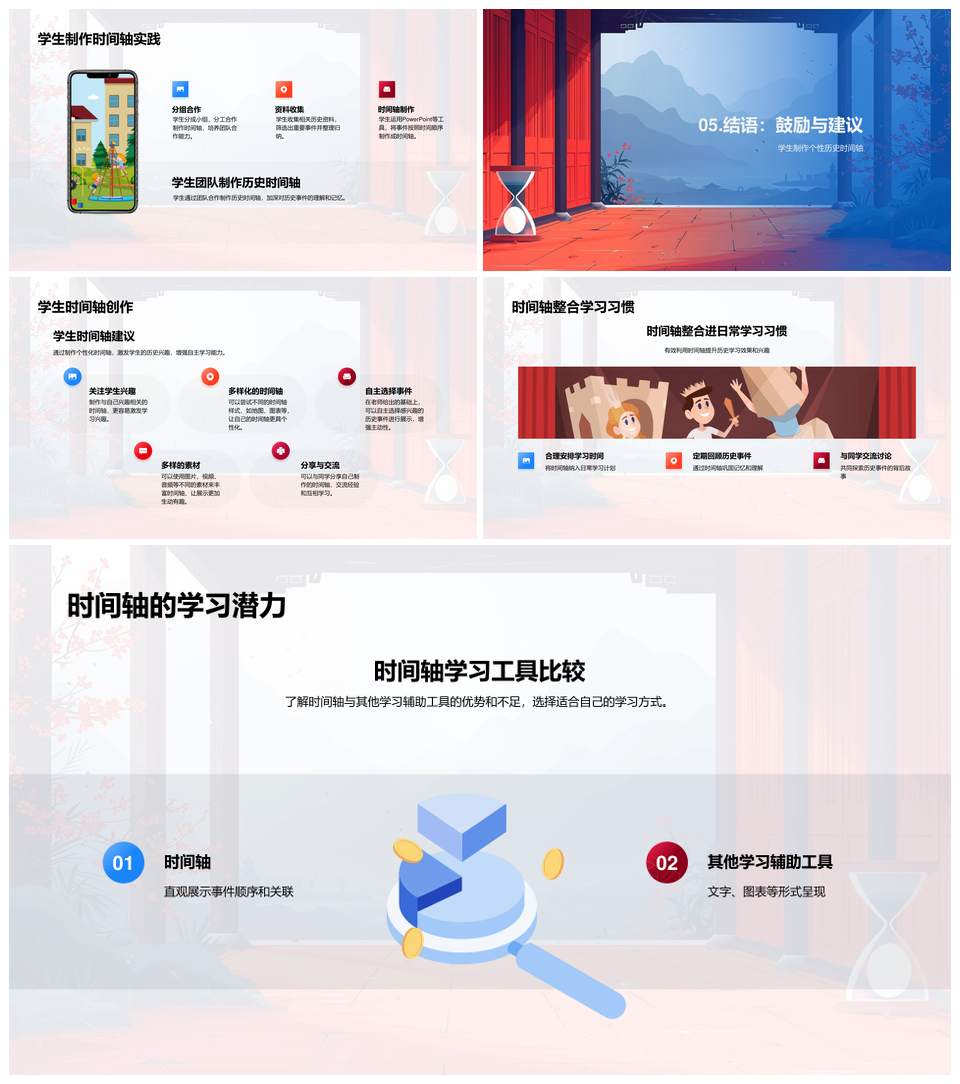 中国古代历史时间轴教学因果事件精选学习法PPT模板推荐