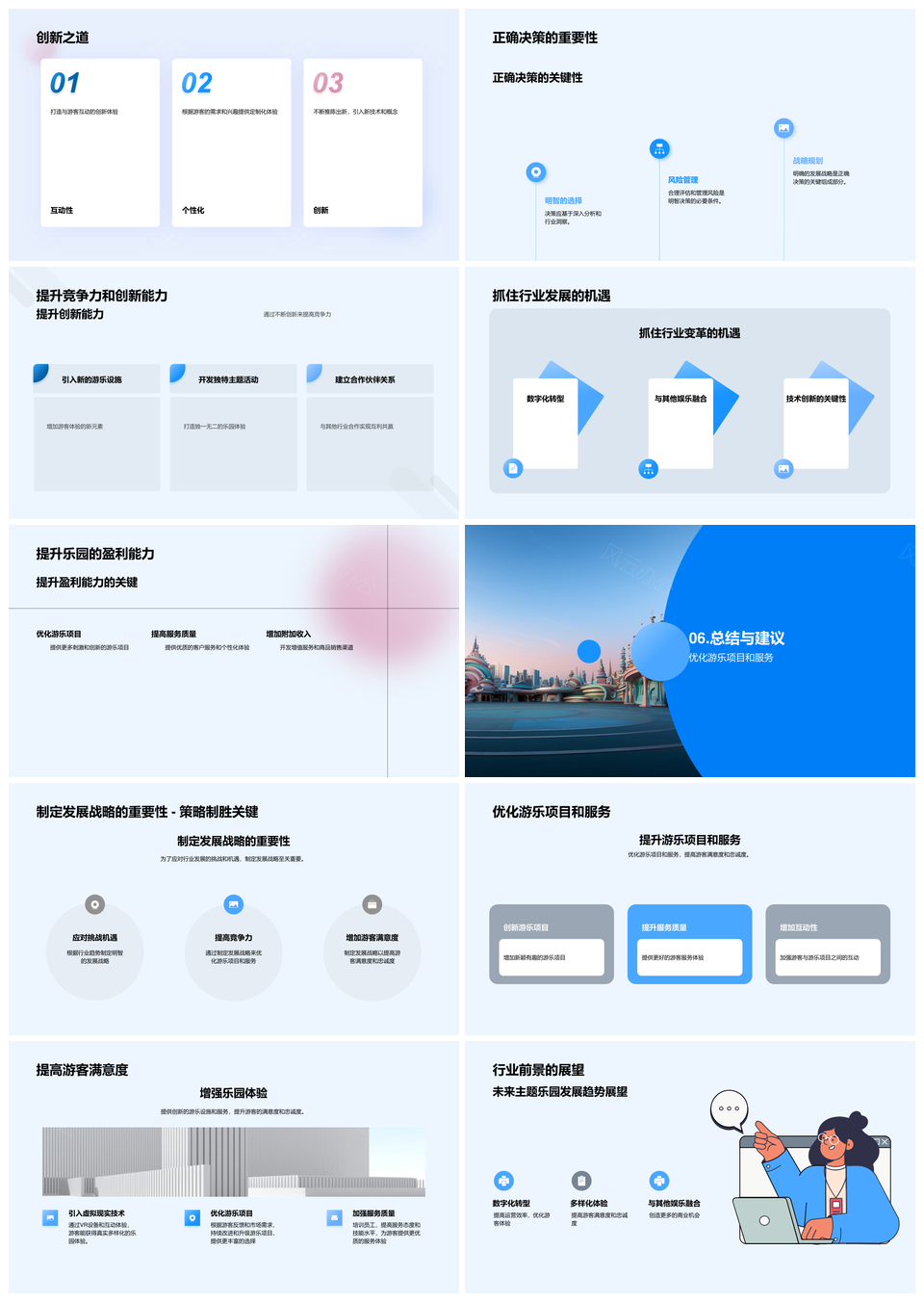这是一张未来主题乐园发展趋势虚拟现实机遇挑战PPT模板,包含未来、主题乐园、发展趋势、虚拟现实、机遇、挑战等主题内容,也可用作未来主题乐园发展趋势虚拟现实、未来主题乐园虚拟现实机遇、主题乐园发展趋势虚拟现实、发展趋势虚拟现实机遇挑战、虚拟现实机遇挑战未来、未来发展趋势虚拟现实机遇、未来机遇挑战主题乐园、虚拟现实挑战发展趋势、主题乐园发展机遇挑战、未来主题乐园机遇挑战、发展趋势虚拟现实挑战、虚拟现实机遇发展趋势、机遇挑战未来趋势、主题乐园虚拟现实机遇、发展机遇挑战未来等PPT场景使用。 风云办公提供的未来主题乐园发展趋势虚拟现实机遇挑战PPT模板,下载格式为pptx,一共39页,作品中文字及图均可以修改和编辑,图片更改请在作品中右键图片并更换,文字修改请直接点击文字进行修改。