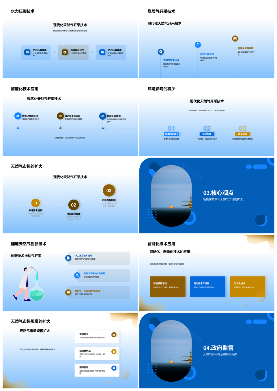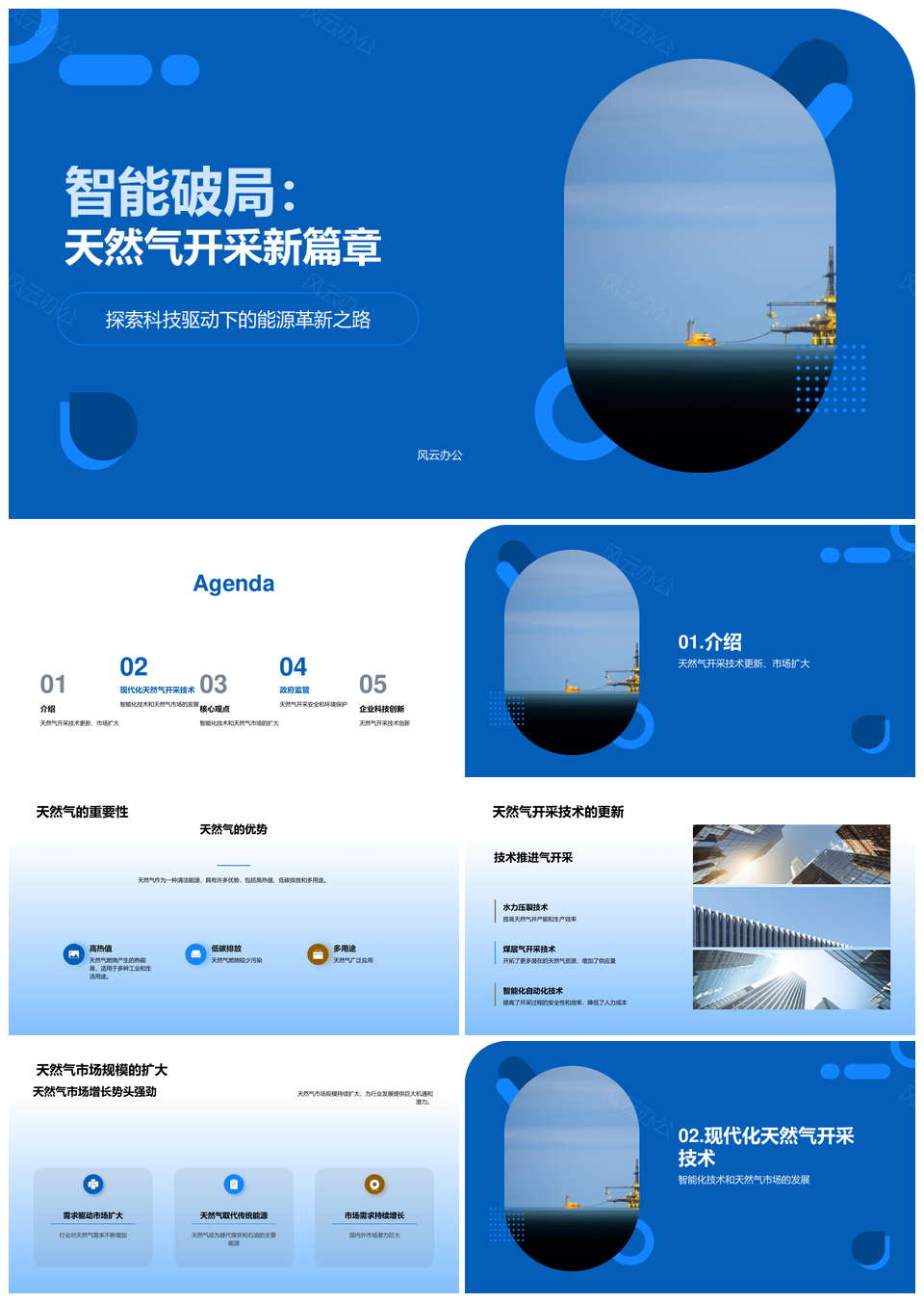 风云办公提供的智能自动化技术革新陆地天然气开采PPT模板,下载格式为pptx,一共24页,作品中文字及图均可以修改和编辑,图片更改请在作品中右键图片并更换,文字修改请直接点击文字进行修改。