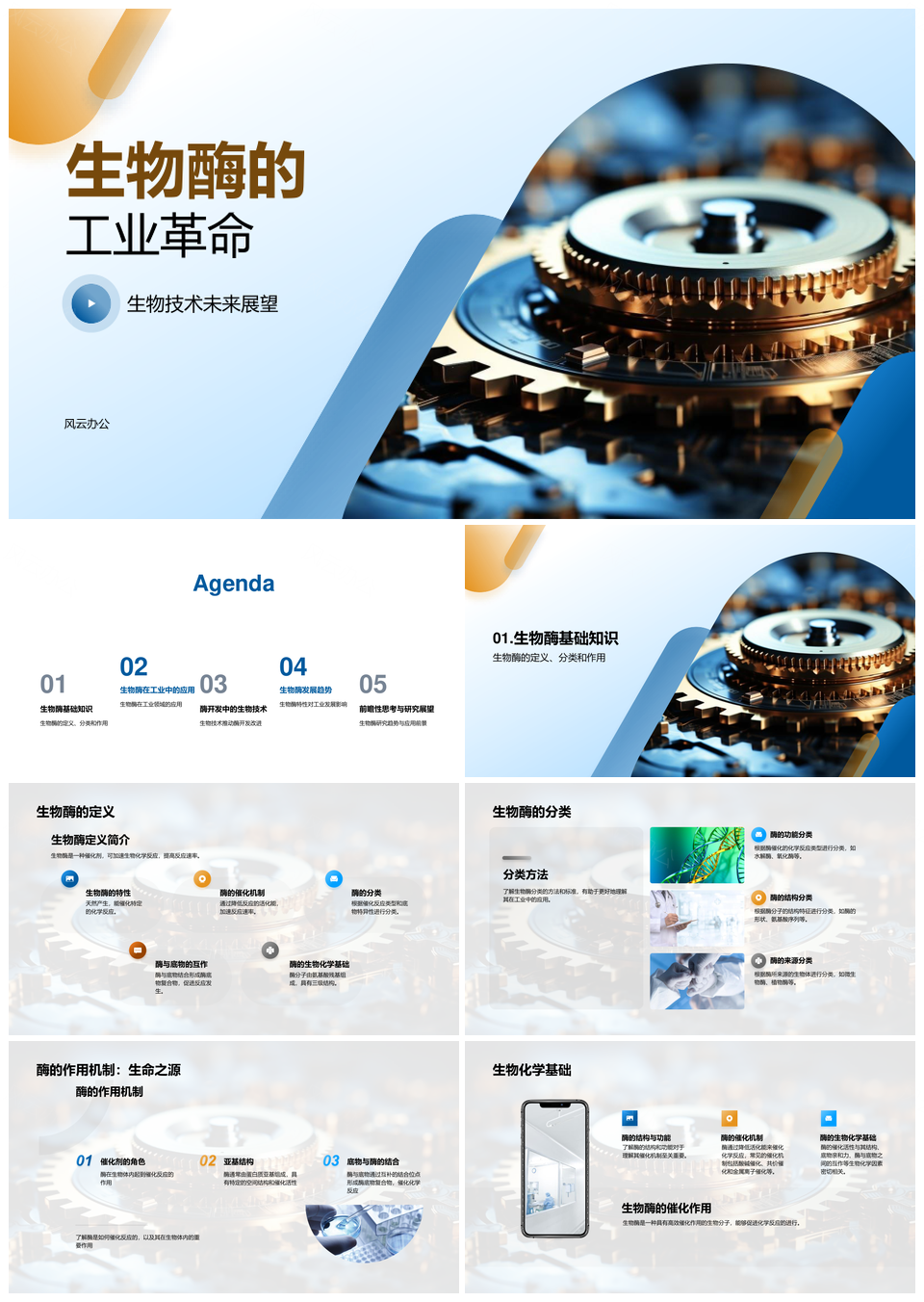风云办公提供的生物酶技术驱动医疗食品工业革命PPT模板,下载格式为pptx,一共33页,作品中文字及图均可以修改和编辑,图片更改请在作品中右键图片并更换,文字修改请直接点击文字进行修改。
