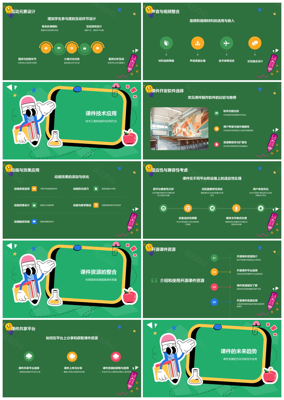 风云办公提供的绿色插画教师备课课堂教学课件,下载格式为pptx,一共20页,作品中文字及图均可以修改和编辑,图片更改请在作品中右键图片并更换,文字修改请直接点击文字进行修改。