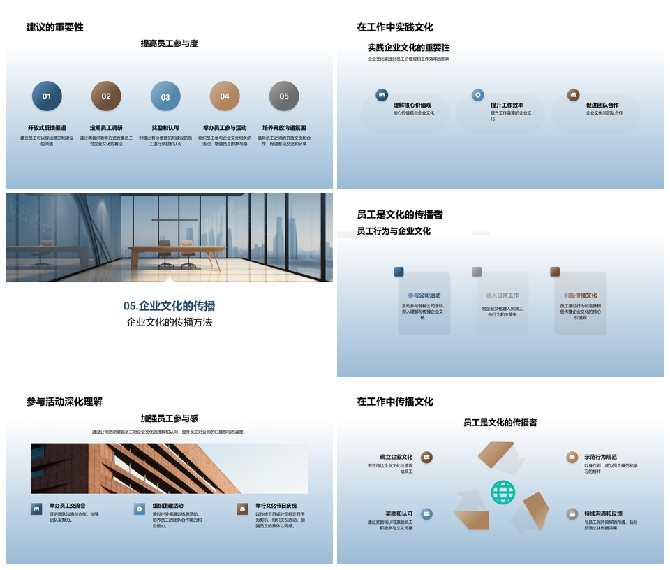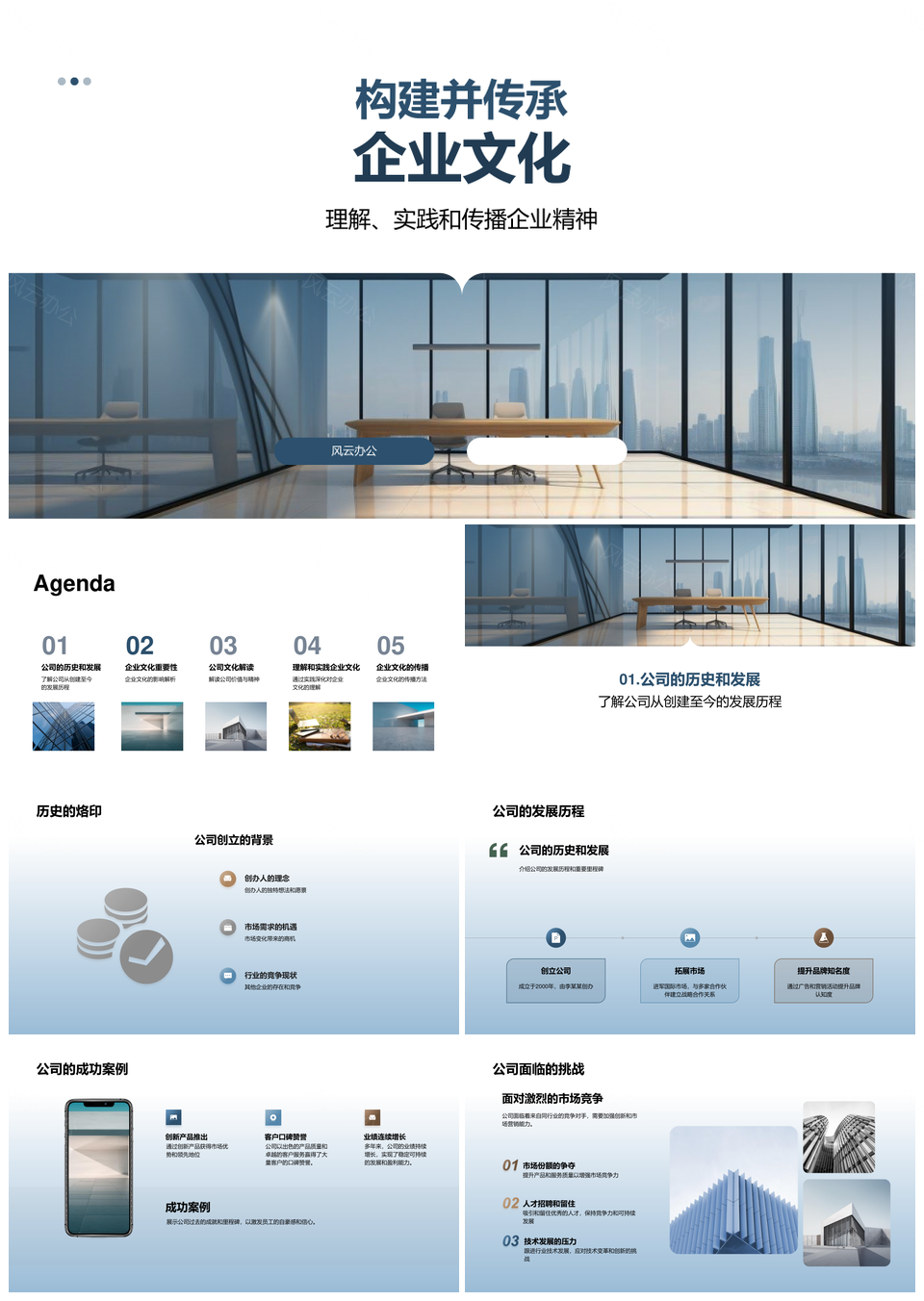 这是一张构建传承企业文化精神发展历程全员培训PPT模板,包含构建、传承、企业、文化、精神、发展、历程、全员、培训等主题内容,也可用作构建传承企业文化精神、构建传承企业文化、构建传承企业精神、构建企业文化精神、传承企业文化精神、传承企业精神发展、企业文化精神发展、文化精神发展历程、精神发展历程全员、发展历程全员培训、构建传承企业、构建企业文化、构建企业精神、传承文化精神、传承精神发展等PPT场景使用。 风云办公提供的构建传承企业文化精神发展历程全员培训PPT模板,下载格式为pptx,一共24页,作品中文字及图均可以修改和编辑,图片更改请在作品中右键图片并更换,文字修改请直接点击文字进行修改。