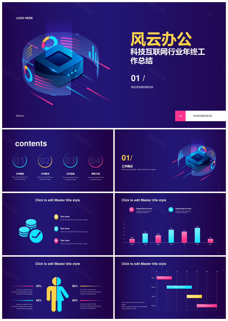 紫色科技大气互联网公司年终总结汇报PPT模板
